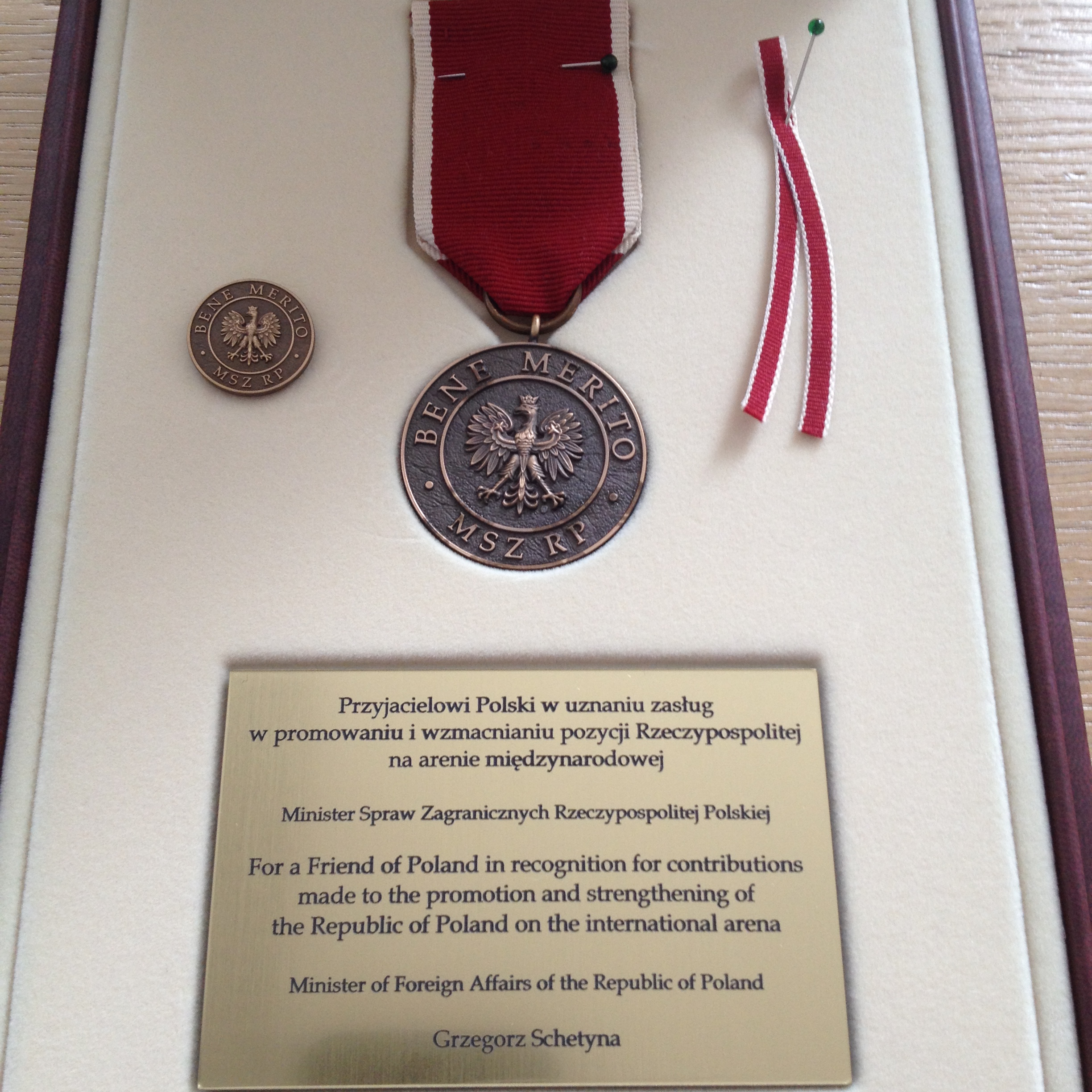 „Bene Merito” to honorowe odznaczenie cywilne przyznawane od 2009 r. przez Ministra Spraw Zagranicznych RP Polakom oraz obywatelom państw obcych, którzy poprzez swoją działalność wzmocnili pozycję Polski na arenie międzynarodowej.
