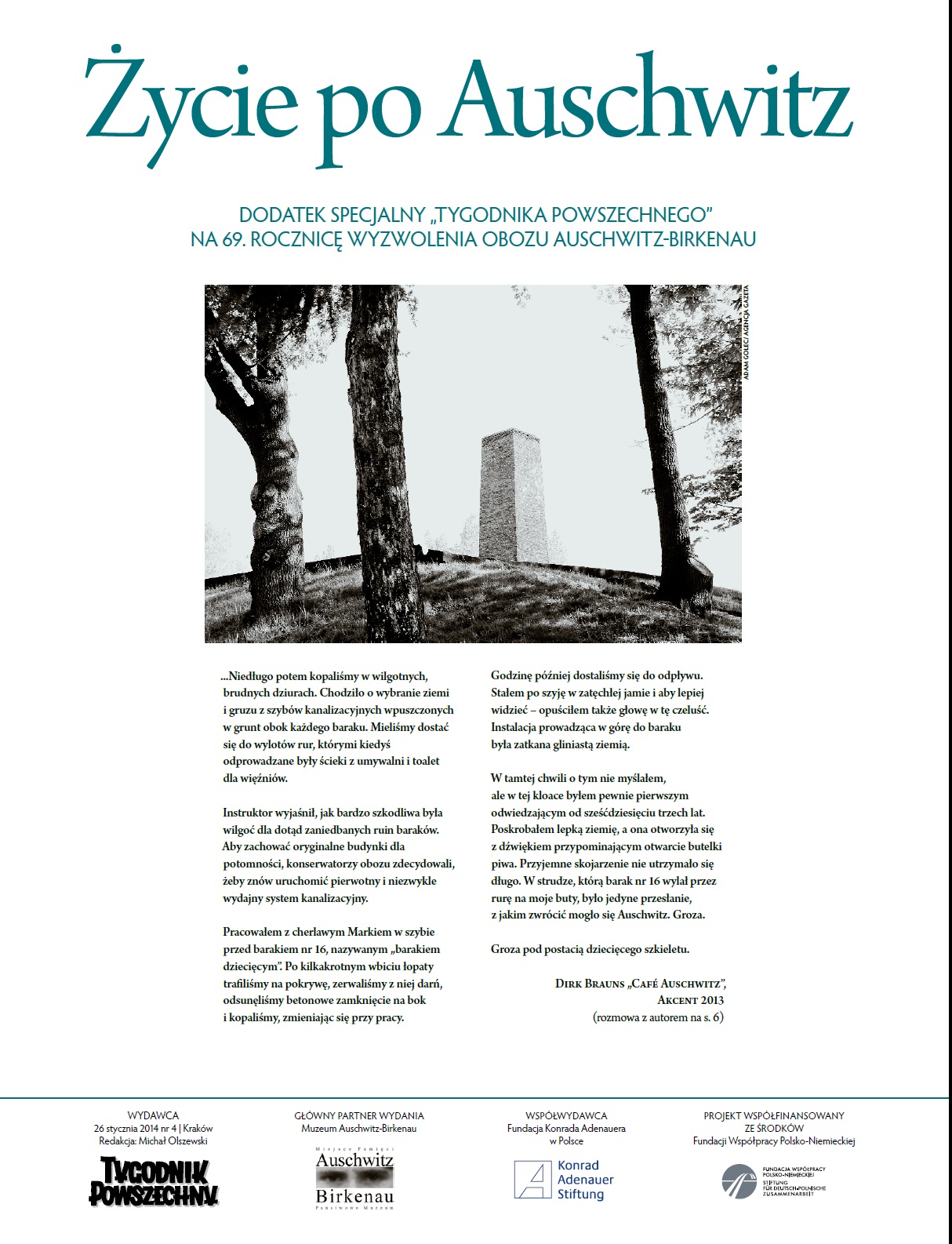 Z okazji 69. rocznicy wyzwolenia obozu koncentracyjnego w Auschwitz w „Tygodniku Powszechnym” ukaże się dodatek specjalny poświęcony kwestiom rozliczenia z przeszłością zawierający wypowiedzi świadków wydarzeń i ich rodzin.