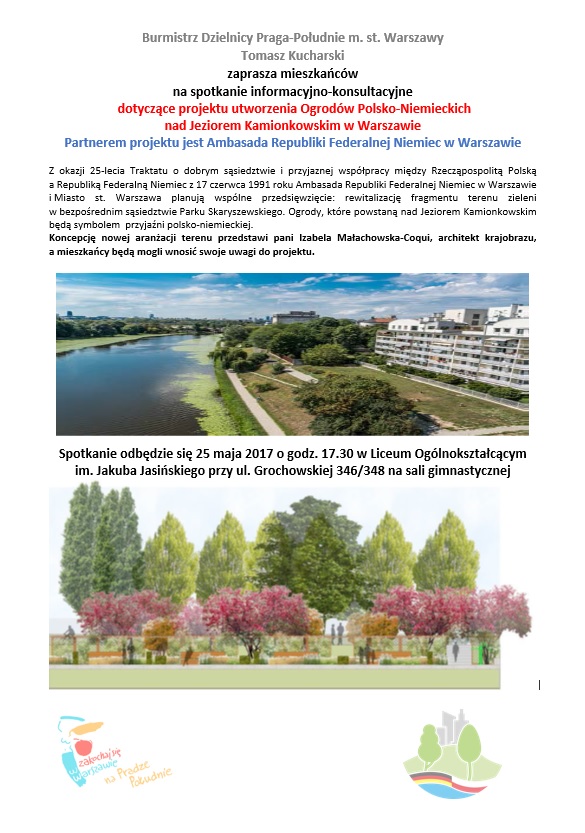 Z okazji 25-lecia Traktatu o dobrym sąsiedztwie i przyjaznej współpracy między Rzecząpospolitą Polską a Republiką Federalną Niemiec z 17 czerwca 1991 roku Ambasada Republiki Federalnej Niemiec w Warszawie i Miasto st. Warszawa planują wspólne przedsięwzięcie: rewitalizację fragmentu terenu zieleni w bezpośrednim sąsiedztwie Parku Skaryszewskiego. Ogrody, które powstaną nad Jeziorem Kamionkowskim będą symbolem przyjaźni polsko-niemieckiej.