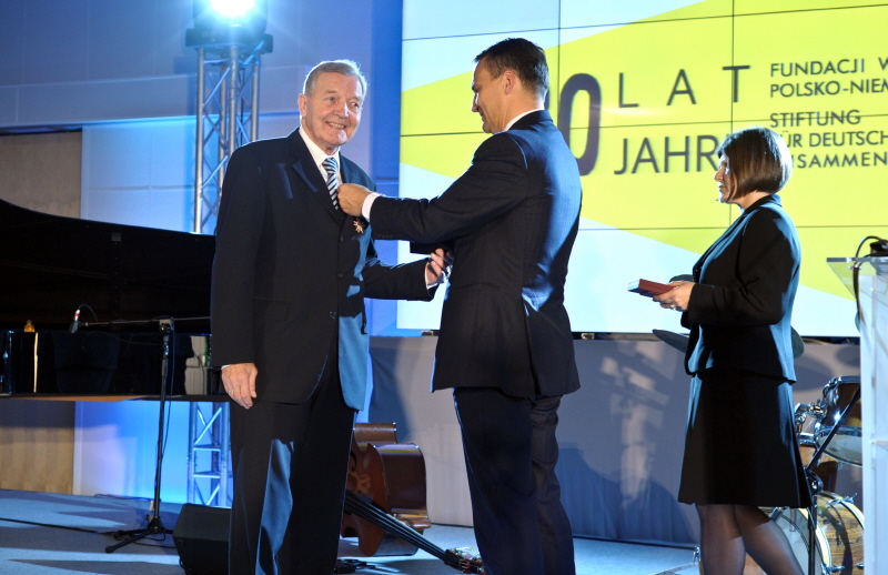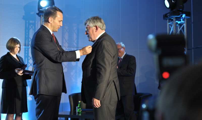 Minister Radosław Sikorski wręczył odznaczenia dwóm odchodzącym członkom zarządu Fundacji: Herbertowi Helmrichowi – Krzyż Oficerski Orderu Zasługi RP oraz Johannesowi Bauchowi – Odznakę Honorową Bene Merito.