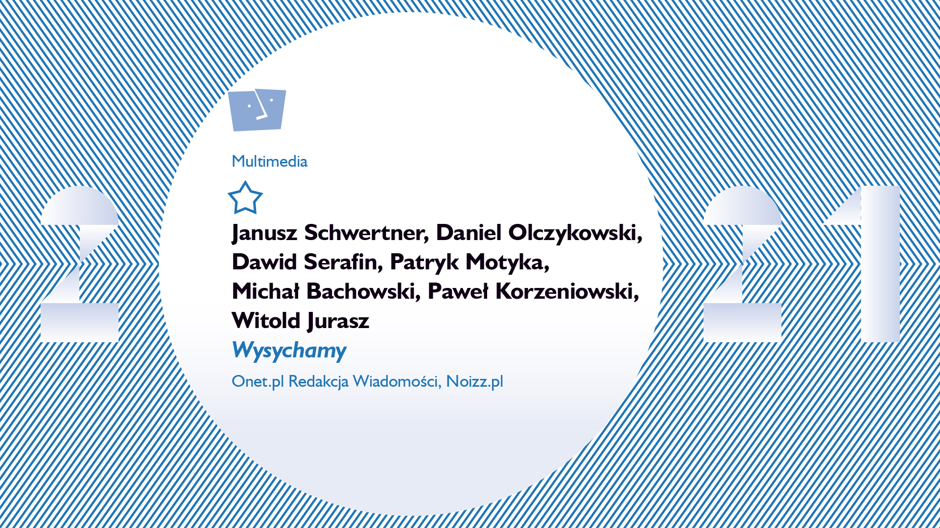 Januszowi Schwertnerowi, Danielowi Olczykowskiemu, Dawidowi Serafinowi, Patrykowi Motyce, Michałowi Bachowskiemu, Pawłowi Korzeniowskiemu, Witoldowi Juraszowi za materiał „Wysychamy”, Wiadomości Onet.pl, Noizz.pl. Materiał powstał w ramach Stypendium dziennikarskiego FWPN.