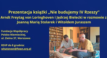 Okazją do dyskusji o sposobach wyjścia z kryzysu stał się wieczór autorski byłego ambasadora RFN w Polsce Arndta Freytaga von Loringhovena, zorganizowany 12 grudnia w siedzibie Fundacji Współpracy Polsko-Niemieckiej. Jego książka „Nie budujemy IV Rzeszy” ukazała się na krótko przed wyborami parlamentarnymi w Polsce.