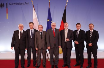 Fot: Auswärtiges Amt. Na zdjęciu (od l.): Krzysztof Miszczak, Johannes von Thadden, Andrzej Grajewski, Frank-Walter Steinmeier, Markus Meckel, Marek Krząkała, Cornelius Ochmann.