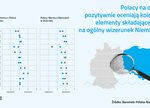 Prawie jedna trzecia (30%) skojarzeń Polaków z Niemcami jest związana z tematyką wojenną. Hasła opisujące Niemcy jako kraj silnej gospodarki i dobrobytu stanowią 14% asocjacji respondentów z Polski, a 8% wiąże się z kulturą, turystyką i językiem. Tymczasem po niemieckiej stronie właśnie ta grupa skojarzeń z Polską jest najliczniejsza (29%), a jej liczebność wzrosła. Skojarzenia związane z historią zajmują 7%. Rzadziej niż w ostatnich latach Niemcy wiążą Polaków z przestępczością i nieporządkiem (4%). „Bardzo cieszy, że dla Niemców Polska jest coraz częściej atrakcyjnym turystycznie krajem, kojarzonym z pięknymi miejscami na wypoczynek”, komentuje wyniki dr Agnieszka Łada z Deutsches Polen-Institut, współautorka badań. „Po polskiej stronie wyraźny jest wzrost emocjonalnych skojarzeń związanych z najtrudniejszym rozdziałem wspólnej historii– od 2016 roku odsetek tych skojarzeń podniósł się z 21%, coraz rzadziej Polacy zaś myślą o Niemczech jako o kraju o wyższym standardzie życia i rozwoju.