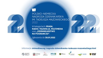 Zgłoszenia prac do 25. Edycji konkursu o Polsko-Niemiecką Nagrodę Dziennikarską 2022 można wysyłać już tylko do najbliższej niedzieli, 30 stycznia 2022 r. Zgłoszenia przyjmujemy w kategoriach Prasa, Radio, Telewizja, Multimedia i „Dziennikarstwo na Pograniczu”. Wysokość Nagrody w każdej z pięciu kategorii konkursowych wynosi 5.000 Euro. Jeżeli tylko pozwoli na to sytuacja pandemiczna, zwyciężczynie i zwycięzcy zostaną wyróżnieni podczas uroczystej gali wręczenia Nagrody 9 czerwca 2022 w ramach Polsko-Niemieckich Dni Mediów, planowanych ponownie jako spotkanie na żywo w Görlitz.
