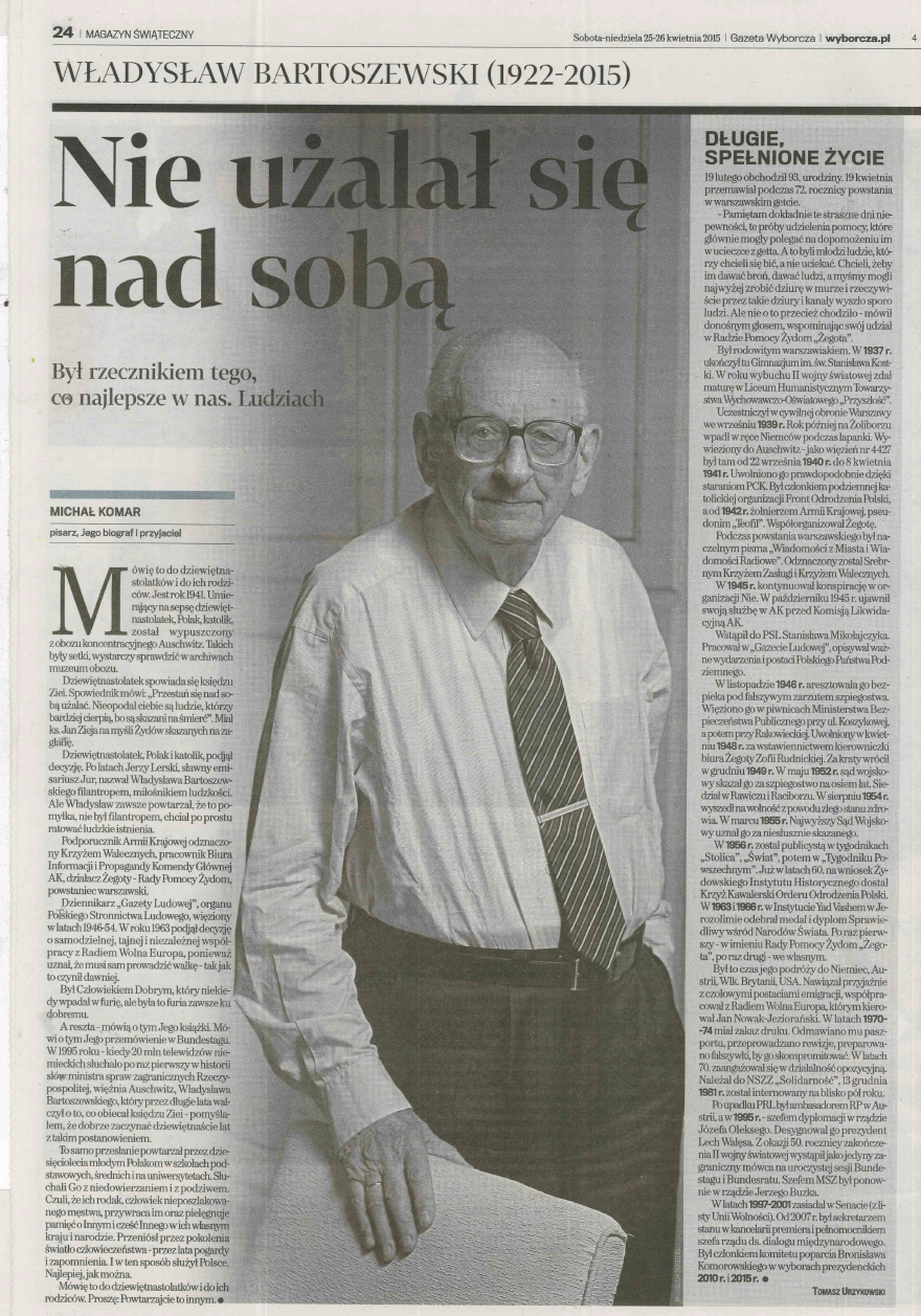 drogi życiowej Władysława Bartoszewskiego.