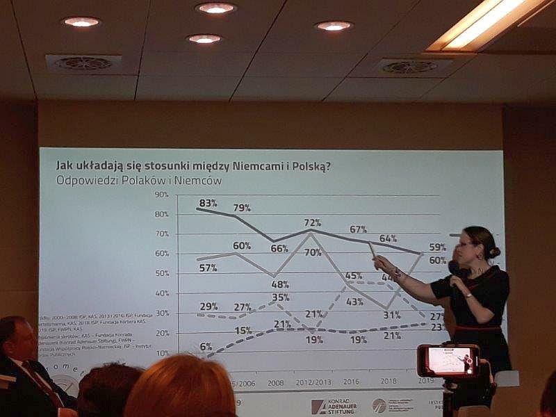 Badanie pokazuje, że Polacy i Niemcy podobnie oceniają obecnie stan stosunków polsko-niemieckich: 59% Polaków i 60% Niemców twierdzi, że relacje są dobre, z kolei 23% Polaków i 27% Niemców postrzega ich stan jako zły.