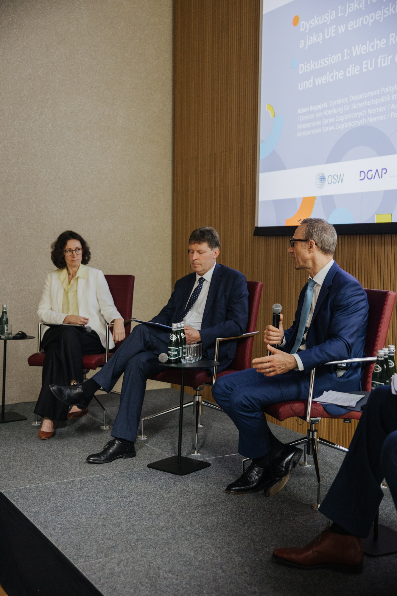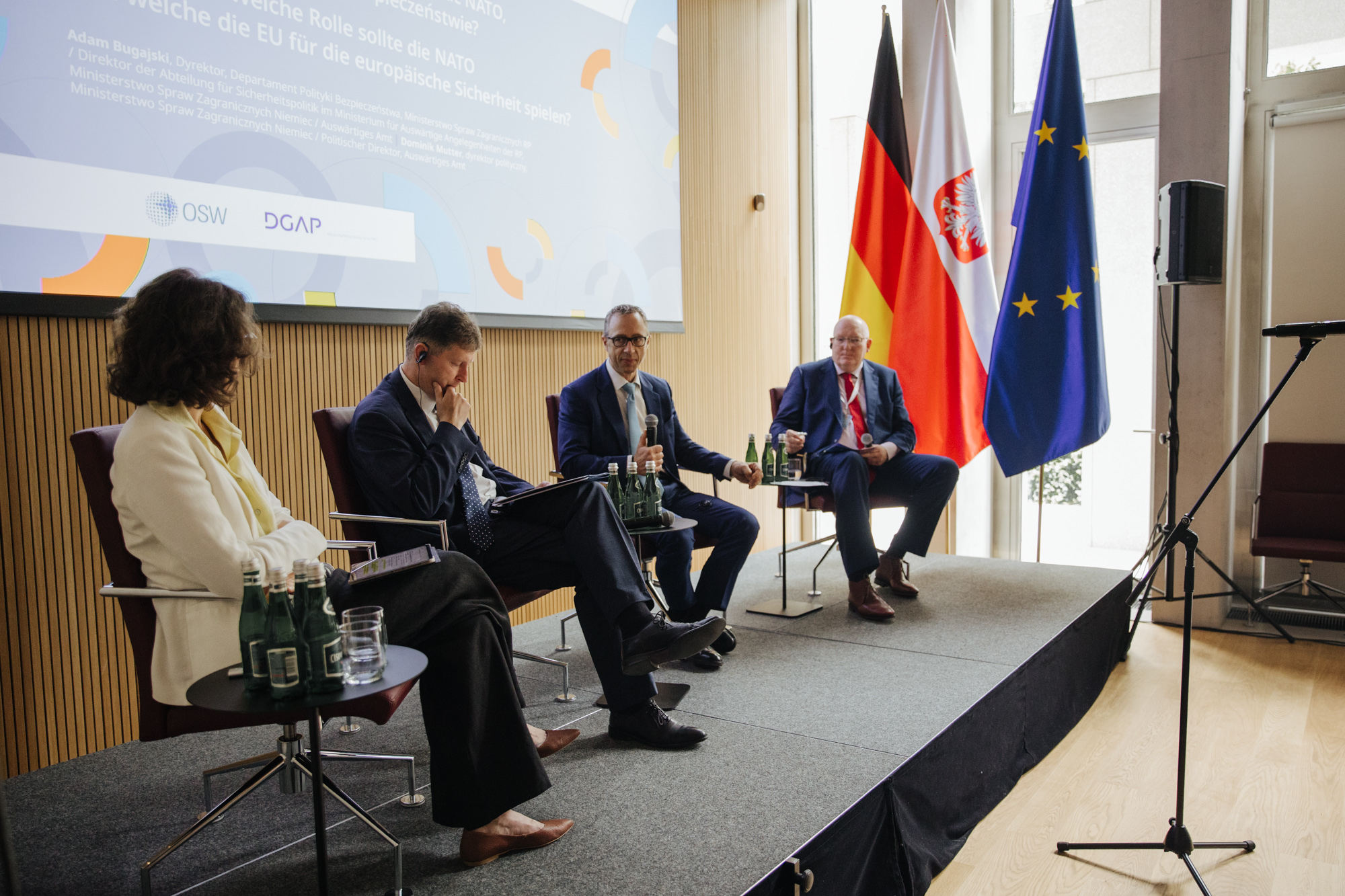 Należy tu podkreślić różne spojrzenia Polski i Niemiec na rolę NATO i Unii Europejskiej w dzisiejszych czasach. Dominik Mutter, dyrektor polityczny w niemieckim Ministerstwie Spraw Zagranicznych, zdecydowanie większą sprawczość przypisywał Sojuszowi Transatlantyckiemu, którego największą zaletą jest (nie)sławny artykuł piąty o kolektywnej obronie w razie wybuchu konfliktu zbrojnego, a także potencjał nuklearny USA, Wielkiej Brytanii i Francji (która jako jedyna z tej triady jest obecnie członkiem Unii Europejskiej) w budowaniu efektywnej strategii odstraszania. Wydaje się więc, że to one mają stać na czele organizacji. Jego zdaniem UE może pełnić rolę co najwyżej komplementarną do działań Sojuszu, wykorzystując swoją soft power do zachęcania państw członkowskich, aby przeznaczały więcej środków finansowych na obronę w razie zagrożenia.