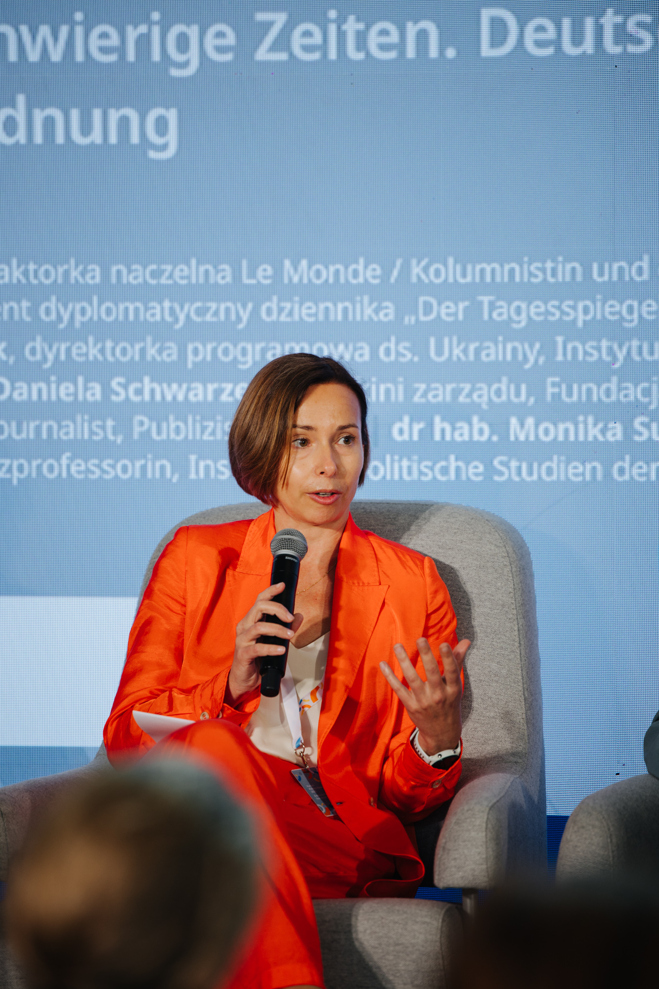 W kończącej obrady Forum Polsko-Niemieckiego debacie plenarnej wzięły udział cztery specjalistki z zakresu studiów politycznych: Sylvie Kauffmann, dziennikarka z francuskiego “Le Monde”, Ljudmila Melnyk, dyrektorka programowa ds. Ukrainy w berlińskim Instytucie Polityki Europejskiej, Daniela Schwarzer z Fundacji Bertelsmanna oraz Monika Sus, politolożka pracująca w Instytucie Studiów Politycznych Polskiej Akademii Nauk i w berlińskiej Hertie School. Dyskusję poprowadzili Christoph von Marschall, niemiecki dziennikarz reprezentujący “Der Tagesspiegel” oraz Jacek Stawiski z TVN24.