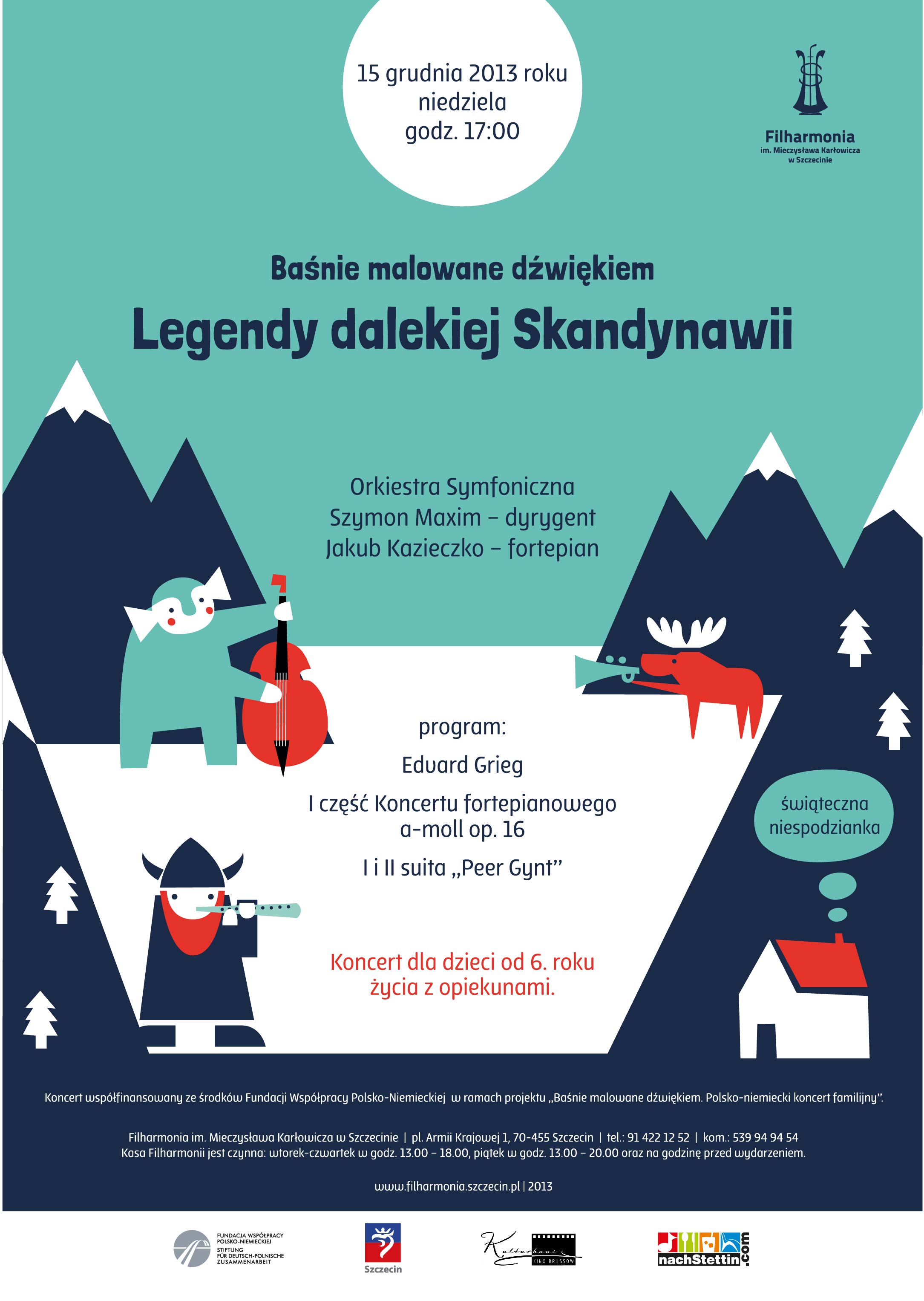 Finał konkursu odbędzie się podczas koncertu familijnego 15.12.2013 w Filharmonii w Szczecinie, podczas którego usłyszymy suity oraz koncert fortepianowy a-moll kompozycji E. Griega. Koncert zakłada udział solisty Jakuba Kazieczko - laureata konkursu fortepianowego. Orkiestrę Filharmonii w szczecinie poprowadzi dyrygent Szymon Maxim.
