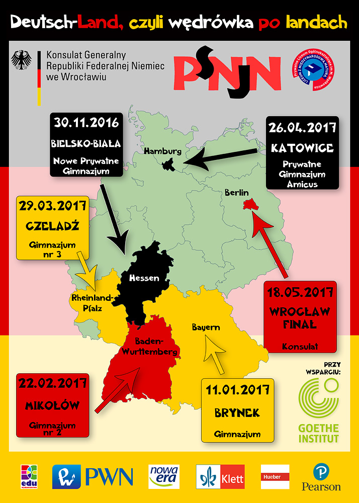 Projekt odbywa się w 5 etapach w 5 różnych szkołach województwa śląskiego. W każdej szkole odbywają się warsztaty, gry i zabawy dotyczące konkretnego landu a na koniec zajęć uczestnicy piszą test. Zwycięska drużyna przechodzi do finału. Finał odbywa się w Konsulacie Generalnym Niemiec we Wrocławiu i dotyczy Berlina.