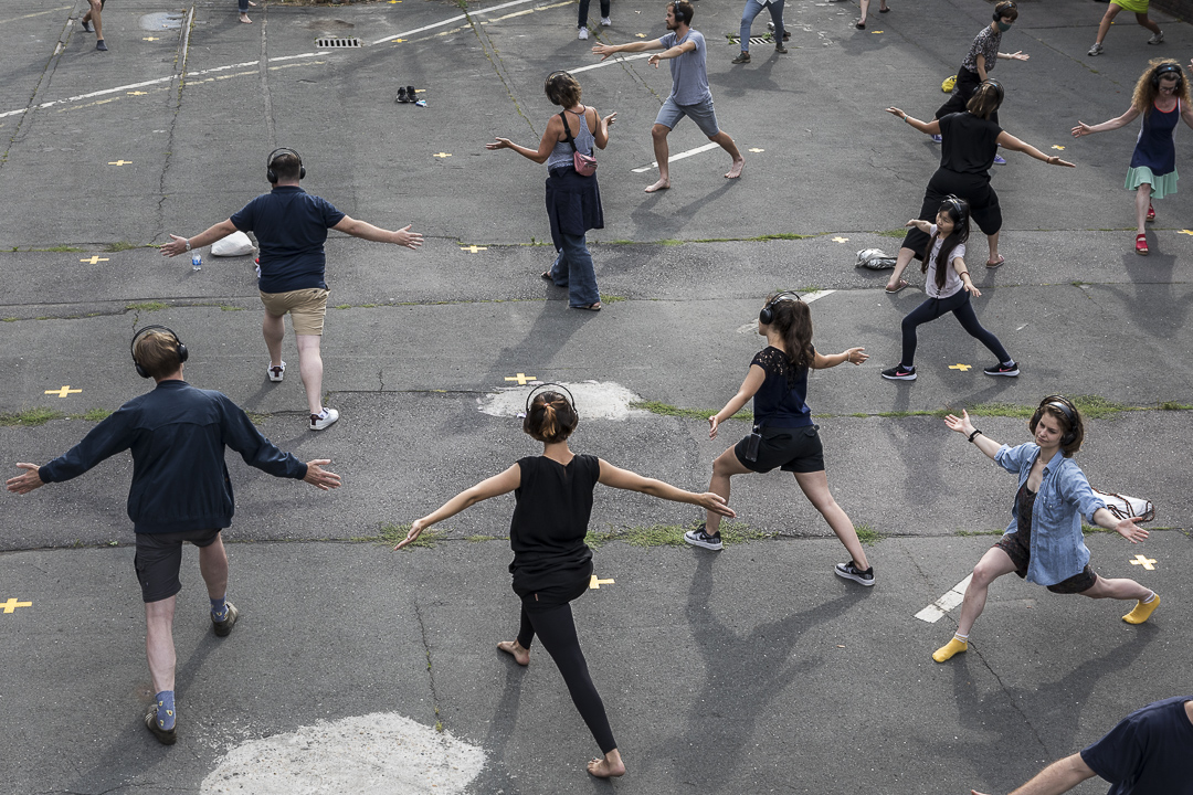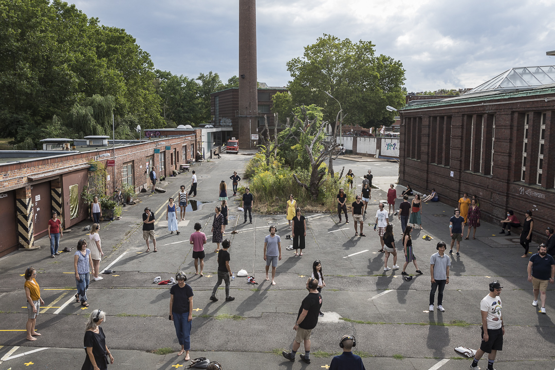 "Rozproszenie wszędzie!" to nowy projekt hamburskiego kolektywu performatywno-medialnego LIGNA, z udziałem trzynastu międzynarodowych artystek i artystów. Członkowie grupy: Ole Frahm, Michael Hueners i Torsten Michaelsen zapytali choreografki i choreografów z całego świata, jakie społeczne i fizyczne zmiany zaobserwowali w swoich miejscach pobytu podczas okresu globalnego zagrożenia. Ze szczególnym naciskiem na doświadczenia bezbronności i solidarności. Publiczność, zaopatrzona w słuchawki, podąża za wielogłosową choreografią i instrukcjami ruchowymi, stając się jednocześnie częścią nowej formy kolektywnego działania.