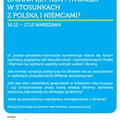 Od: 16 grudnia 2010 Do: 17 grudnia 2010 WarszawaW dniach 16-17 grudnia 2010 w Warszawie odbędzie się polsko-niemiecko-ukraińska konferencja „Ukraina 2010+ - zmiana czy kontynuacja w stosunkach z Polską i Niemcami” . Celem tego cyklicznego wydarzenia (w tym roku odbywa się już po raz szósty) jest zaprezentowanie poglądów elit decydenckich i opiniotwórczych Polski i Niemiec na wybrane aspekty polityki wobec Ukrainy.
