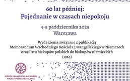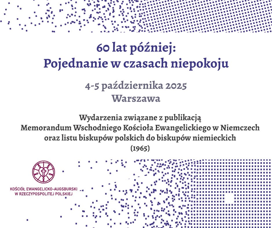 Zapraszamy do udziału w wydarzeniach upamiętniających 60- lecie publikacji Memorandum Wschodniego Kościoła Ewangelickiego w Niemczech oraz listu biskupów polskich do biskupów niemieckich. Program obejmuje wspólną modlitwę, refleksje teologiczne, dyskusje eksperckie oraz wydarzenia kulturalne, które pozwolą zastanowić się nad rolą Kościołów w procesie pojednania w czasach niepokoju, ekstremizmu, populizmu, wojen i konfliktów.