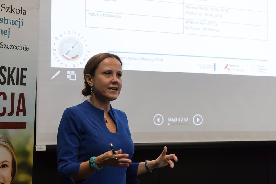 Debata na temat obecnej sytuacji w stosunkach polsko-niemieckich była połączona z prezentacją najnowszych badań Barometru Polska-Niemcy przygotowaną przez dr Agnieszkę Ładę z Instytutu Spraw Publicznych w Centrum Dialogu Przełomy 28 września 2018 roku.