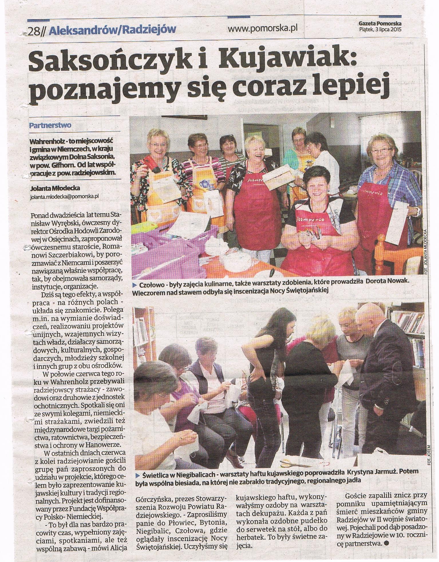 EDUKACJA KOBIET WIEJSKICH PARTNERA NIEMIECKIEGO W ZAKRESIE POZNAWANIA I SZERZENIA KUJAWSKIEJ KULTURY I TRADYCJI REGIONALNEJ
