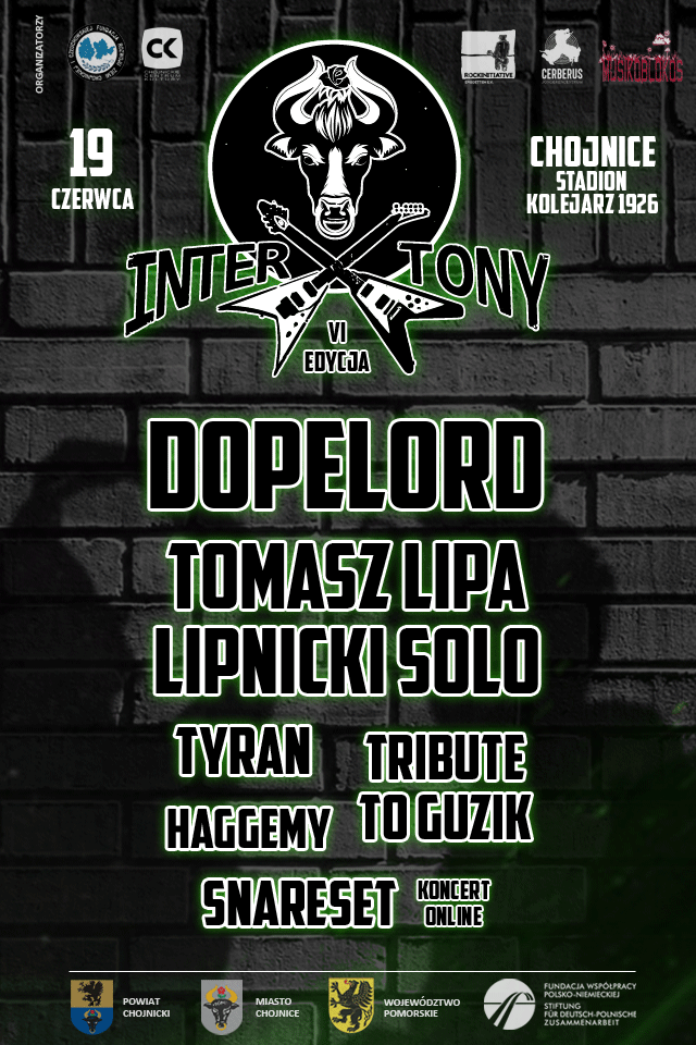 Na scenie zobaczymy klimatyczny doom stonerowy Dopelord - polską formację, która wypracowała sobie mocną pozycję w gatunku nie tylko w Polsce, ale i zagranicą. Akustyczny set zagra lider grupy Illusion - Tomasz LIPA Lipnicki. Kilka tygodni temu lokalni muzycy (Moringa, Marcin Brzeziński / Mass Insanity, Janusz Łangowski oraz gościnnie Maciej Jahnz / Flapjack) zrealizowali projekt pod nazwą Tribute To Guzik, w hołdzie zmarłemu na początku roku wokaliście zespołów Flapjack i Homosapiens. Będzie możliwość usłyszeć ich na żywo na festiwalu. Wystąpi także thrashcore’owy Tyran z Chojnic i heavy metalowe Haggemy. W ramach festiwalu zobaczymy koncert online punkowej kapeli z Emsdetten - Snareset.Występy muzyczne uzupełniać będą m.in. wywiady i prezentacje związane z historią i organizacją współpracy muzycznej pomiędzy Chojnicami i Emsdetten.