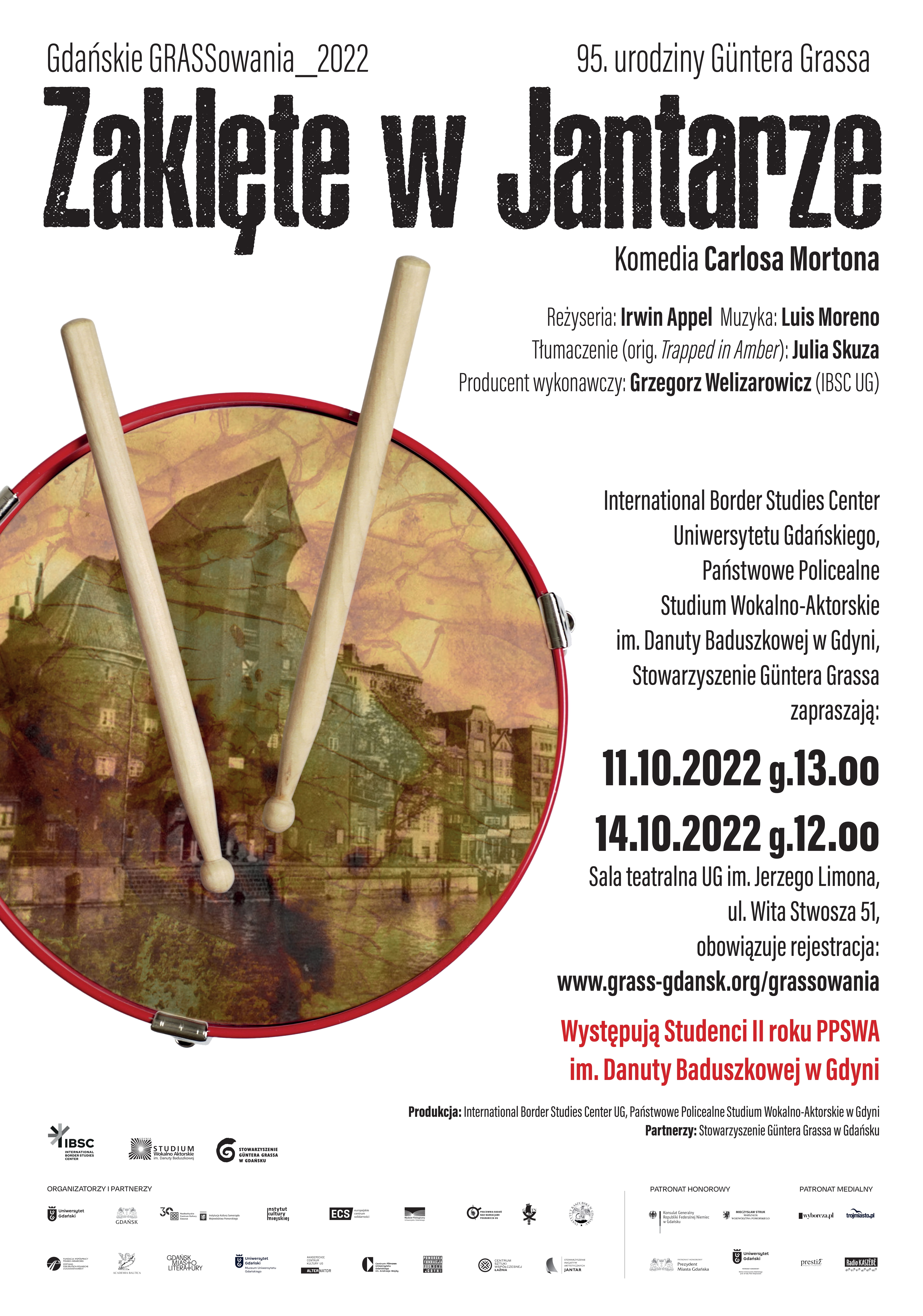 Uniwersytet Gdański / Wydział Filologiczny / Instytut Filologii Germańskiej / Pracownia Badań nad Narracjami Pogranicza / International Border Studies Center / Akademickie Centrum Kultury ALTERNATOR / Centrum Filmowe im. Andrzeja Wajdy / Muzeum Uniwersytetu Gdańskiego Stowarzyszenie Güntera Grassa w Gdańsku Fundacja Współpracy Polsko-Niemieckiej Europejskie Centrum Solidarności Gdańskie Towarzystwo Naukowe Instytut Kaszubski Instytut Kultury Miejskiej Nadbałtyckie Centrum Kultury Pomorska Fundacja Filmowa w Gdyni Teatr Muzyczny w Gdyni Miasto Gdańsk Urząd Marszałkowski Konsulat Generalny Niemiec w Gdańsku Centrum Sztuki Współczesnej Łaźnia Stowarzyszenie Inicjatyw Artystycznych „Jantar” Fundacja Herdera UG