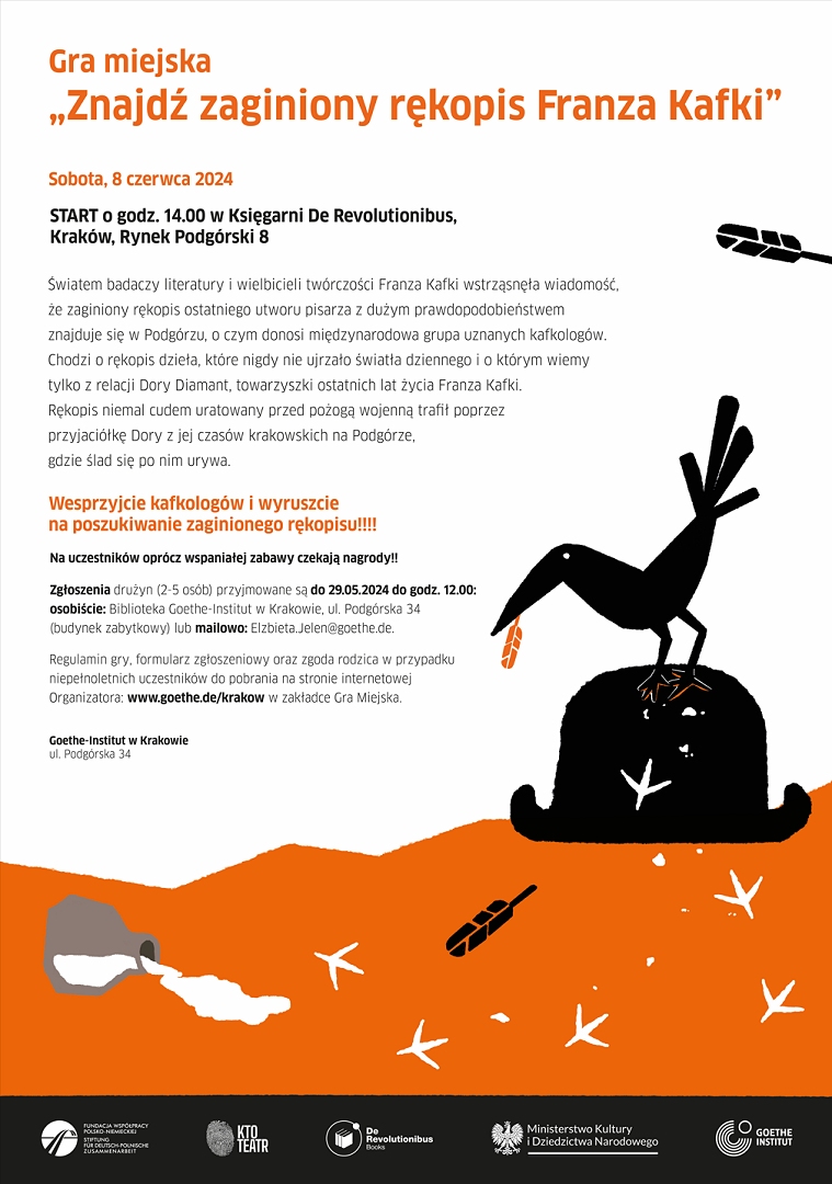 Gra jest częścią święta „Kafka w Podgórzu”. Szczegółowe informacje na stronie www.goethe.de/krakow zakładka Święto „Kafka w Podgórzu”.