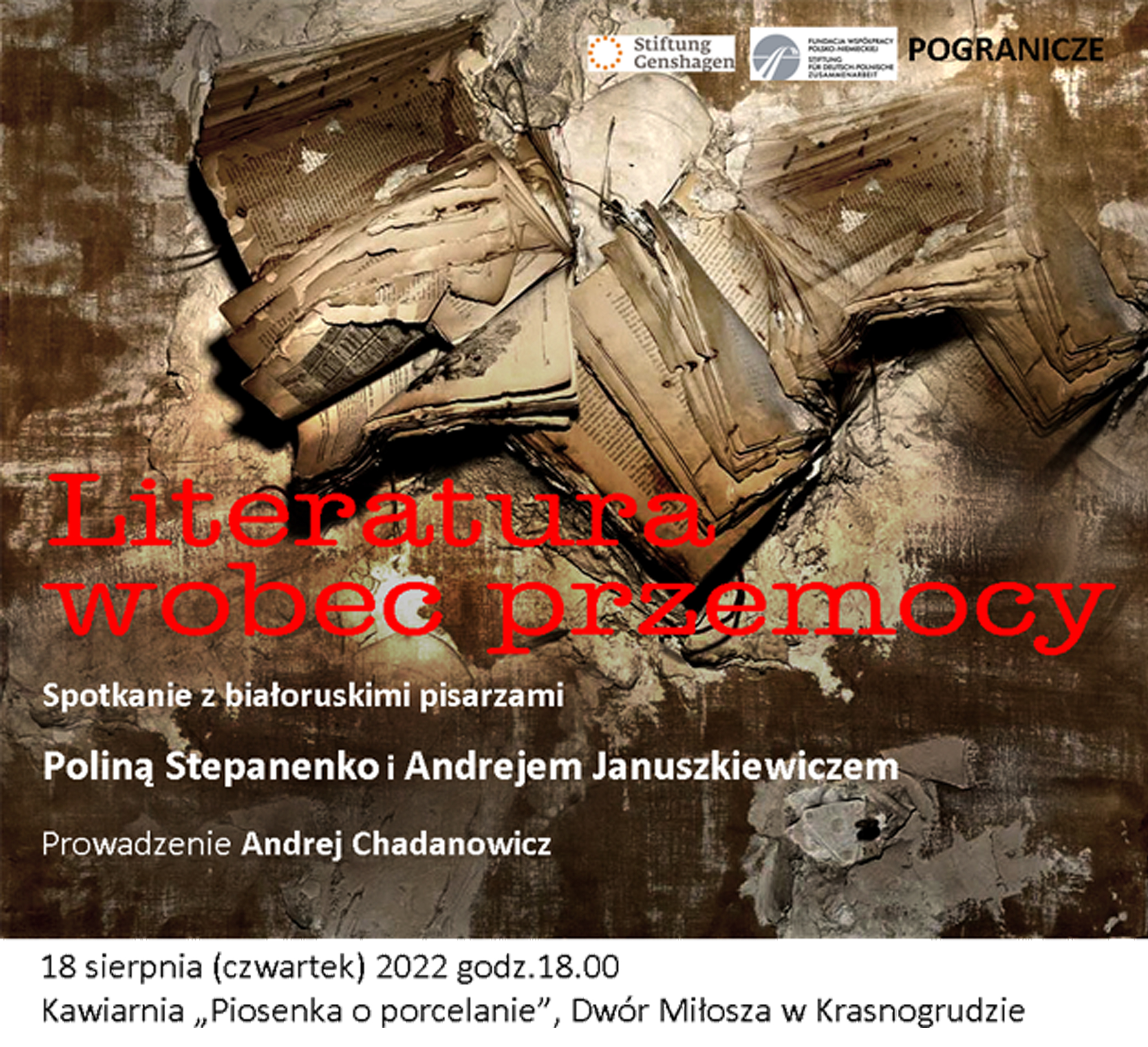 Spotkanie organizowane jest w ramach programu rezydencyjnego "Rozmów ciąg dalszy – polsko-niemiecko-białoruski program rezydencji dla autorów z Białorusi”, który Pogranicze realizuje wspólnie z Fundacją Genshagen oraz Białoruskim PEN Clubem. Współfinansowany jest on przez Fundację Współpracy Polsko Niemieckiej.