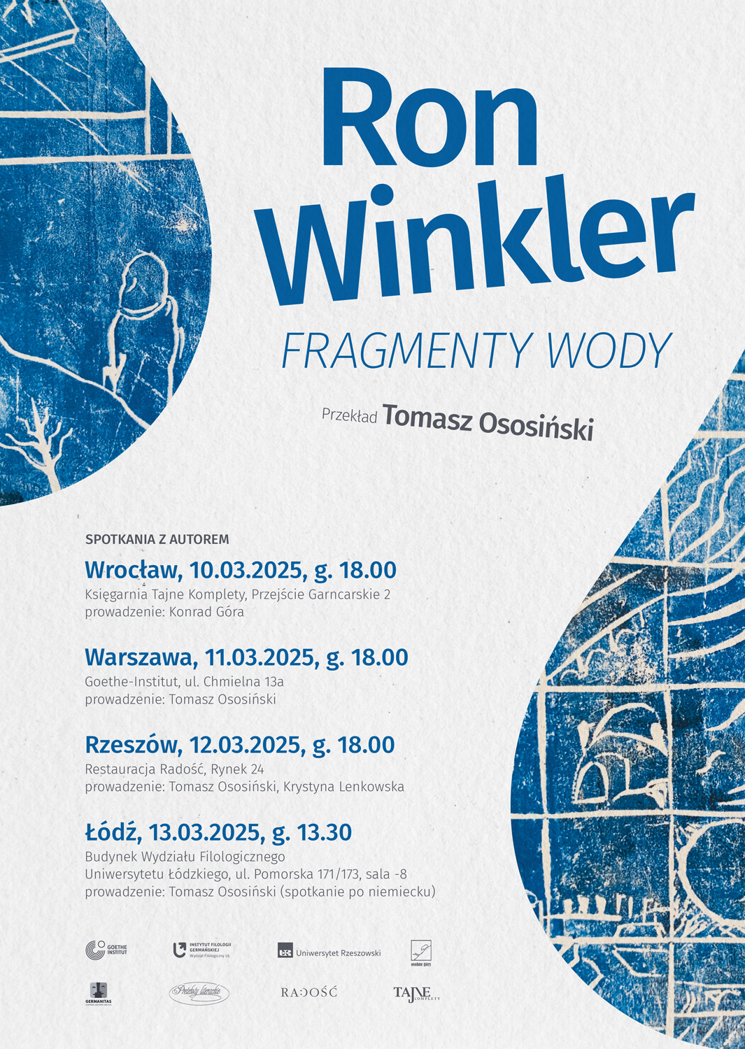 Cykl spotkań - we Wrocławiu, w Warszawie, Rzeszowie i Łodzi - z niemieckim poetą Ronem Winklerem, którego wybór wierszy pt. Fragmenty wody, w przekładzie Tomasza Ososińskiego, ukazal się w końcu 2024 nakładem wydawnictwa Osobne Góry.