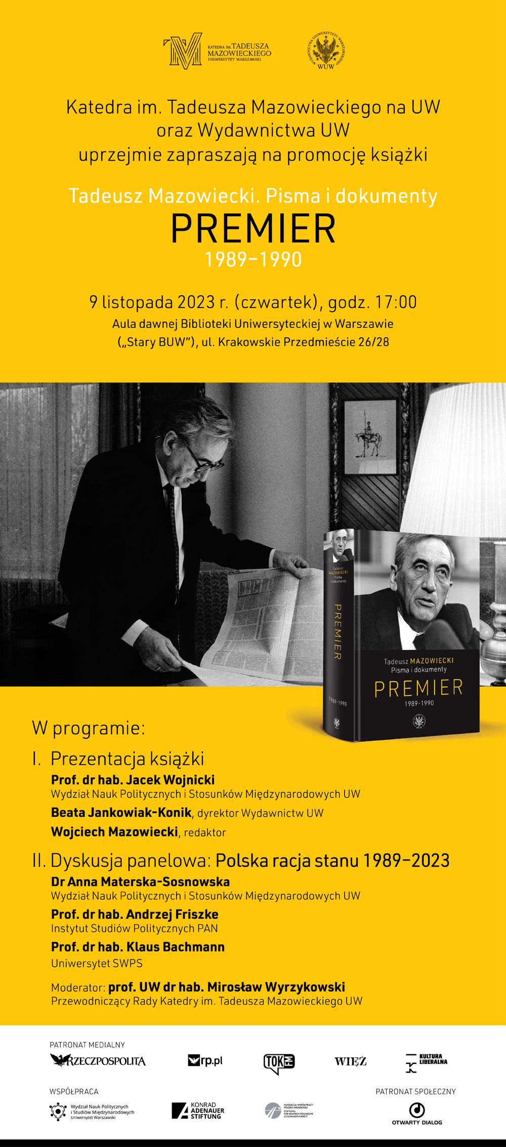 Moderator: prof. UW dr hab. Mirosław Wyrzykowski, Przewodniczący Rady Katedry im. Tadeusza Mazowieckiego UW