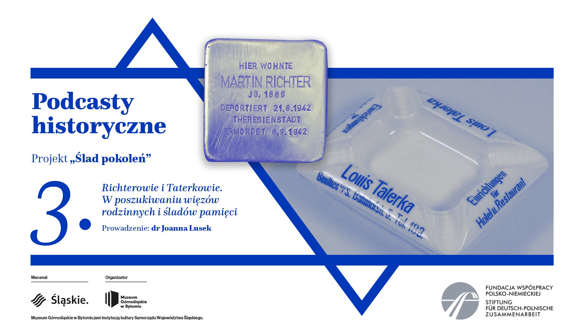 Zapraszamy Państwa do wysłuchania trzeciego z serii podcastów historycznych pt. „Richterowie i Taterkowie. W poszukiwaniu więzów rodzinnych i śladów pamięci” w ramach projektu „Ślad pokoleń. Od synagogi do Żydowskiego Domu Modlitwy w Bytomiu”.