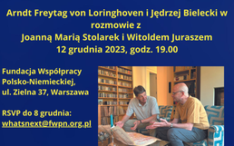 Zapraszamy we wtorek 12.12.2023 na godz. 19:00 do siedziby Fundacji Współpracy Polsko-Niemieckiej na ul. Zielną 37 w Warszawie (Sala Warszawa 5 piętro).