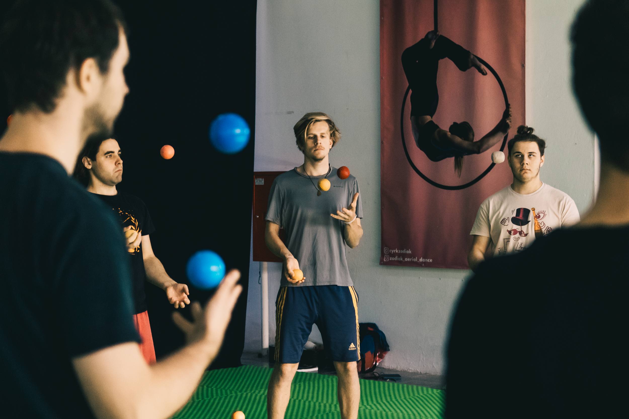 Uczestników zaprosimy na warsztaty akrobatyki, tańca w powietrzu, cyr wheel, żonglerki, diabolo, akrobalansu, flow art i innych pokrewnych dyscyplin Nowego Cyrku