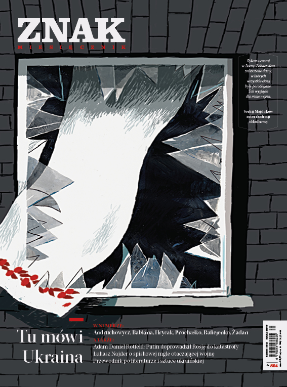 Majowy numer miesięcznika "Znak" poświęciliśmy toczącej się wojnie. Oddaliśmy głos twórcom i twórczyniom z Ukrainy, aby swoimi słowami opowiedzieli o tym, jak ta wojna wygląda, na jakim historycznym i politycznym gruncie się zrodziła i w końcu jak zmieniła ich życie. Na naszych łamach wypowiadają się pisarze (m.in. Jurij Andruchowycz, Wołodymyr Rafiejenko, Wiktoria Amelina) i historycy (Jarosław Hrycak, Serhij Płochij), a ukraińscy artyści przygotowali oprawę graficzną numeru. Dodatkowo publikujemy przewodnik po literaturze i sztuce ukraińskiej. Nowy zeszyt "Znaku" ma stanowić kompendium, które pomoże nam lepiej zrozumieć naszych wschodnich sąsiadów. W ramach współpracy z portalem "Forum Dialogu" wybrane teksty zostaną również przełożone na język niemiecki.