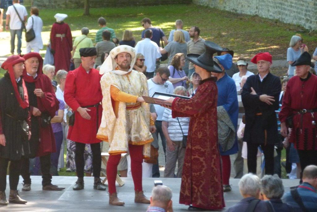 Uszyte stroje zostaną zaprezentowane podczas otwarcia Dni Ziemi Strzeleckiej w sobotę 01.06.2013 r. o godz. 15.00. Aby uświetnić obchody święta naszego miasta przyjedzie do Strzelec Opolskich także grupa taneczna "Firlitanz" w historycznych strojach. Średniowieczny festyn w Soest (tzw. Soester Fehde) odbywa się od 2009 roku co dwa lata. Podczas Soester Fehde przedstawia się obronę mieszkańców Soest w latach 1444 - 1449 przed oblężeniem miasta przez wojska władcy Arcybiskupa z Kolonii. Naturalnie historia z XV wieku powtarza się. Mieszkańcy Soest pokonują napastnika. W następstwie tego wydarzenia mieszkańcy Soest wywalczyli sobie niezależność i zawarli sojusz z księciem Nadrenii Johannem von Kleve. Podczas przedstawienia szturmu na miasto, które odbywa się przy średniowiecznych murach bierze udział kilkaset uzbrojonych rycerzy. Rycerze Ci rozkładają namioty wokół Soest, w których spędzają kilka dni. Podobnie jak podczas Dni Ziemi Strzeleckiej, także w Soest odbywa się korowód, ale prawie wszyscy uczestnicy są w strojach z XV wieku, a wokół rozbrzmiewa do późnej nocy średniowieczna muzyka. Projekt będzie kontynuowany w Soest podczas Soester Fehde w sierpniu 2013 roku.