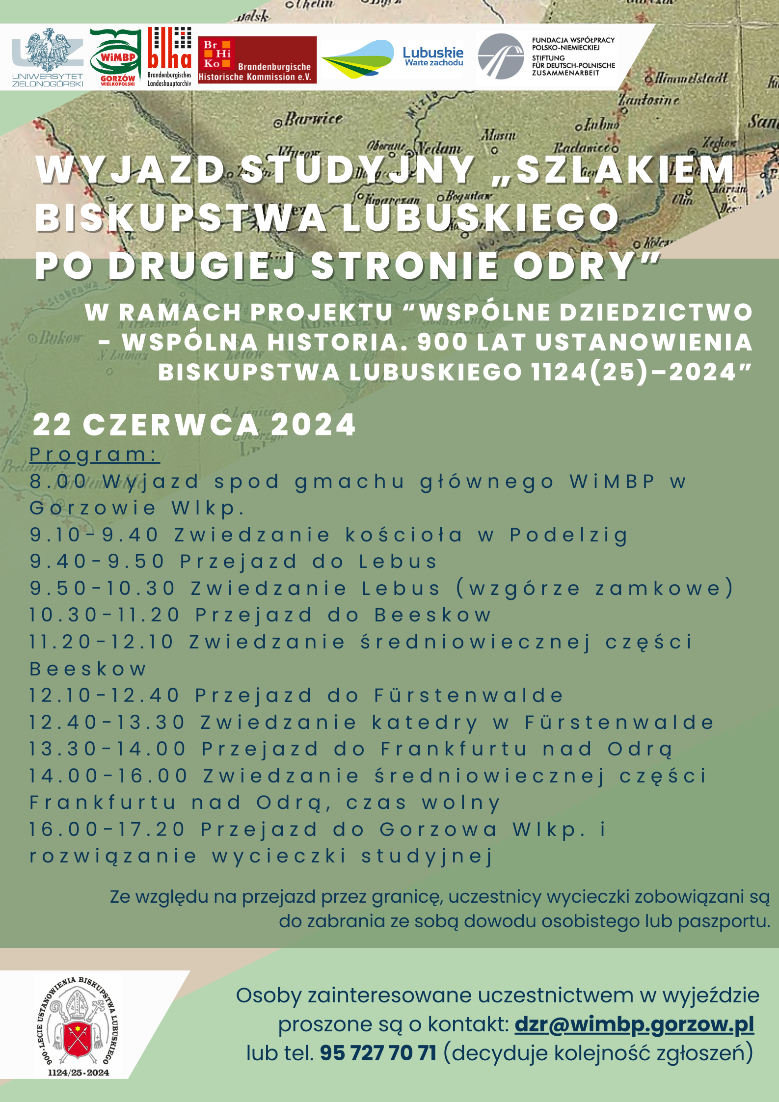 Wyjazd studyjny "Szlakiem biskupstwa lubuskiego po drugiej stronie Odry" w ramach projektu "Wspólne dziedzictwo-wspólna historia. 900-lecie ustanowienia biskupstwa lubuskiego 1124 (25)-2024". Projekt dofinansowany przez Fundację Współpracy Polsko-Niemieckiej.