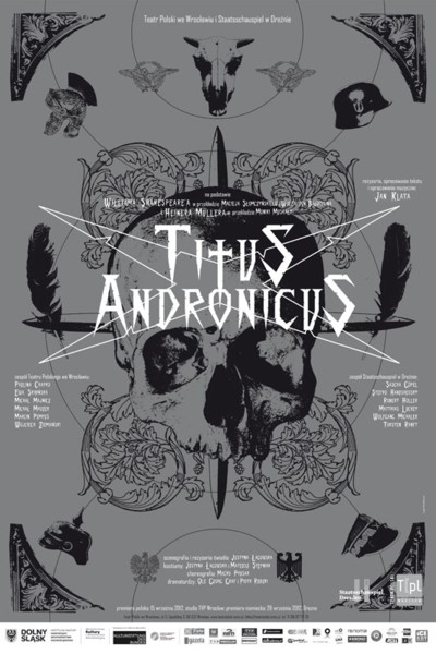 Przedstawienie oparte na dramacie Williama Shakespeare’a „Titus Andronicus” w przekładach na język polski Macieja Słomczyńskiego i język niemiecki Wolfa von Baudissina oraz na fragmentach utworu Heinera Müllera „Anatomia Tytusa Fall of Rome. Komentarz do Szekspira” (Anatomie Titus Fall of Rome Ein Shakespearekommentar) w przekładzie na język polski Moniki Muskały.