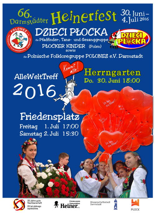 W uroczystej ceremonii otwarcia festynu w czwartek 30 czerwca o godz. 18:00 w Herrngarten uczestniczył będzie zaproszony z inicjatywy zespołu POLONEZ Harcerski Zespół Pieśni i Tańca DZIECI PŁOCKA im. Druha Wacława Milke. Drugi występ Zespołu DZIECI PŁOCKA odbędzie się 1 lipca o godz. 17:00 w Darmstadt na Friedensplatz. Zespół DZIECI PŁOCKA jest najstarszym zespołem dziecięcym w Polsce. Grupa zdobyła liczne nagrody, wyróżnienia i pierwsze miejsca na festiwalach.