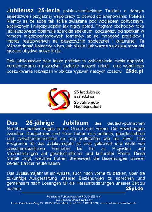 Wspólny występ obu zespołów z miast partnerskich: z Płocka (DZIECI PŁOCKA) i z Darmstadt (POLONEZ) odbędzie się w sobotę 2 lipca o 15:30 na Friedensplatz w Darmstadt. Serdecznie zapraszamy!