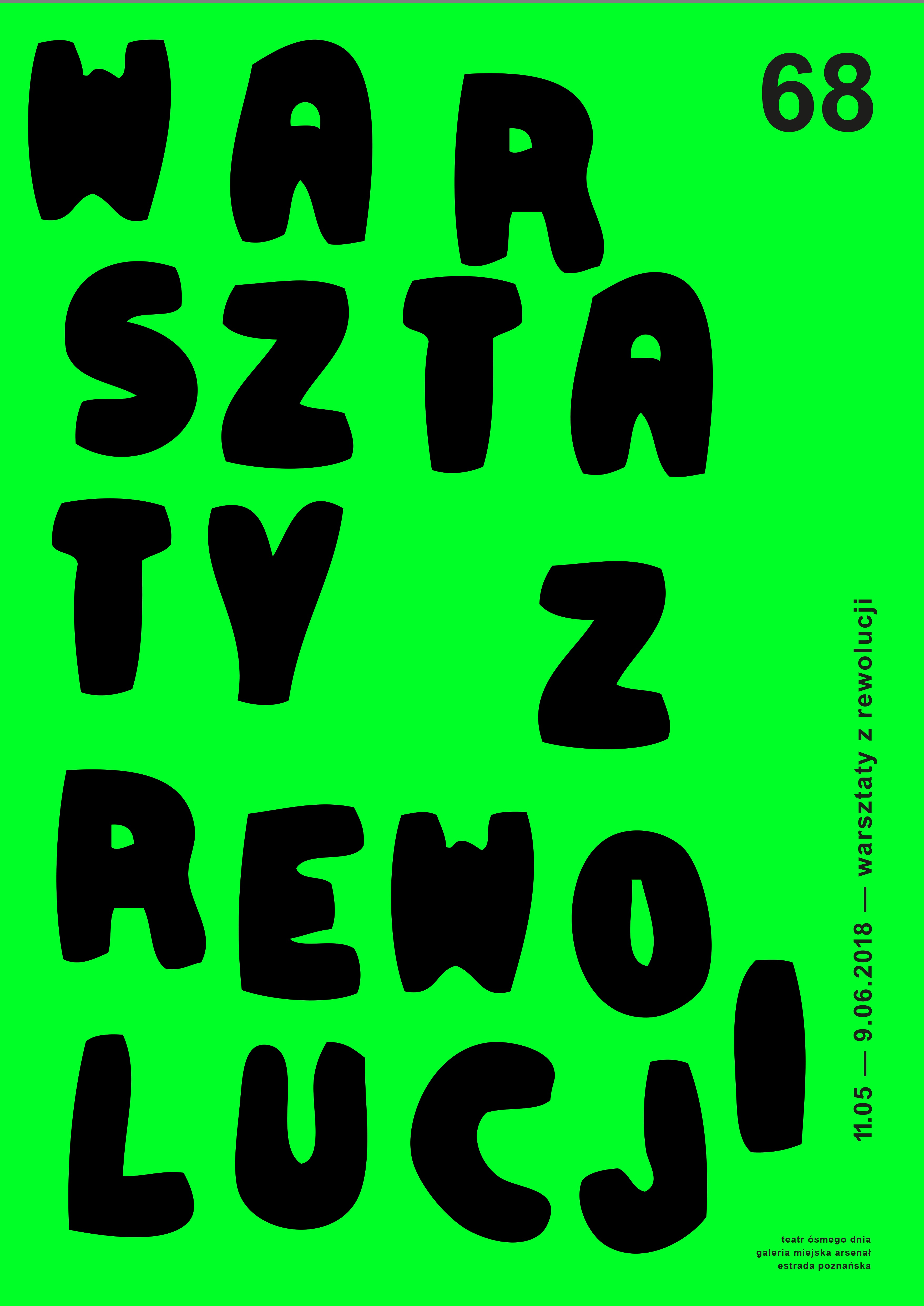 rocznicę; chcemy, aby stał się teraźniejszością. Nie przyjmujemy pozycji niezaangażowanych obserwatorów zdarzeń, zdystansowanych badaczy-antropologów, lingwistów analizujących poprawność stylistyczną haseł wypisanych na transparentach. Naszym celem jest internalizacja doświadczeń i uczuć towarzyszących rewolucji, tak aby odnaleźć ich źródło, aby je zrozumieć i odnieść do naszych współczesności. Zapraszamy na Warsztaty z rewolucji do galerii, teatru i na Plac Wolności. Podczas majowych wydarzeń będzie można wziąć udział w rytuale przygotowanym przez The Army of Love, zobaczyć filmy Alexandra Kluge, wsłuchać się w dźwięki rewolucji, która się jeszcze nie odbyła razem z Ultra Red lub też rozczytać się w tej już minionej wspólnie z „Czasem Kultury”.