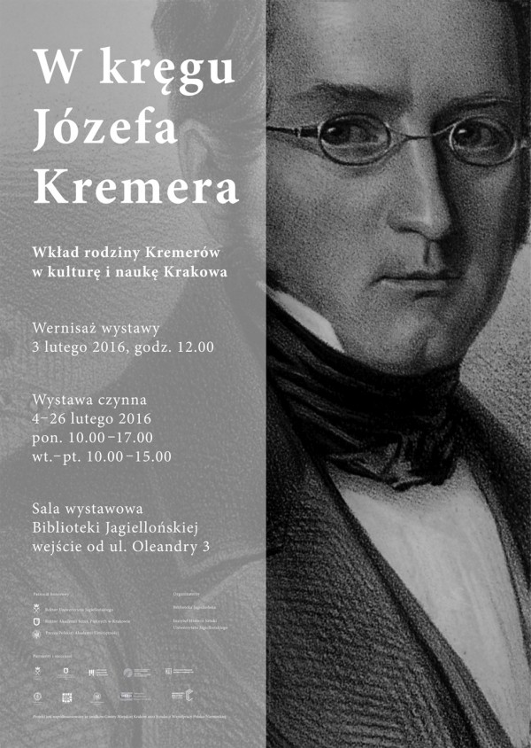 Perspektywa biograficzna ukazuje jak na fascynujące losy kolejnych pokoleń Kremerów wpływała historia. Losy Kremerów to przykład dobrowolnej asymilacji rodziny niemieckiej. „Rodzice, choć byli Niemcy [...] wychowali trzech synów na najprawdziwszych Polaków” – odnotował w prywatnych zapiskach Ambroży Grabowski. Kolejne pokolenia familii wniosły ogromny wkład w kulturę i naukę miasta: wśród jej przedstawicieli byli profesorowie, urzędnicy, artyści, naukowcy oraz pisarze. Wystawa koncentruje się przede wszystkim na głównych gałęziach rodu, którym początek dali jego trzej wybitni przedstawiciele: Józef Kremer (1806–1875) – krakowski historyk sztuki, filozof, profesor i rektor Uniwersytetu Jagiellońskiego, wykładowca Szkoły Sztuk Pięknych, a także członek Polskiej Akademii Umiejętności, Karol Kremer (1812–1860) – architekt, konserwator zabytków, dyrektor Urzędu Budownictwa wolnego Miasta Krakowa i Aleksander Kremer (1813–1880) – lekarz, przyrodnik, społecznik, działacz m.in. Krakowskiego Towarzystwa Dobroczynności oraz Arcybractwa Miłosierdzia. Wystawa "W kręgu Józefa Kremera. Wkład rodziny Kremerów w kulturę i naukę Krakowa" jest częścią projektu o Józefie Kremerze (1806–1875) realizowanego w Instytucie Historii Sztuki Uniwersytetu Jagiellońskiego w ramach Narodowego Programu Rozwoju Humanistyki (2012–2016). Wystawę uzupełnia pokaz prac studentów krakowskiej Akademii Sztuk Pięknych – uczestników konkursu na plakat wystawy o rodzinie Kremerów i okładkę książki podsumowującej najnowsze wyniki badań nad dorobkiem Józefa Kremera, która ukaże się jeszcze w tym roku. Prezentowane na wystawie obiekty i ilustracje zamieszczone na planszach pochodzą ze zbiorów Biblioteki Jagiellońskiej (BJ), Towarzystwa Przyjaciół Sztuk Pięknych (TPSP), Archiwum Narodowego w Krakowie (ANK), Biblioteki Naukowej Polskiej Akademii Umiejętności i Polskiej Akademii Nauk (BN PAU i PAN), Muzeum Uniwersytetu Jagiellońskiego (MUJ), Biblioteki Narodowej (BN), Archiwum UJ (AUJ), Muzeum Narodowego w Krakowie (MNK), Archiwum Polskiej Prowincji Dominikanów w Krakowie (ADK), Polskiego Słownika Biograficznego (PSB), Muzeum Historii Miasta Krakowa (MHMK), Muzeum Regionalnego Młodej Polski „Rydlówka" (Rydlówka), Instytutu Historii Sztuki Uniwersytetu Jagiellońskiego (IHS). Wyjątkowe miejsce zajmuje zbiór korespondencji Kremera, który był uważany dotychczas za zaginiony, a został odnaleziony w 2015 r. w Archiwum Zgromadzenia Księży Misjonarzy w Krakowie (AZKM).