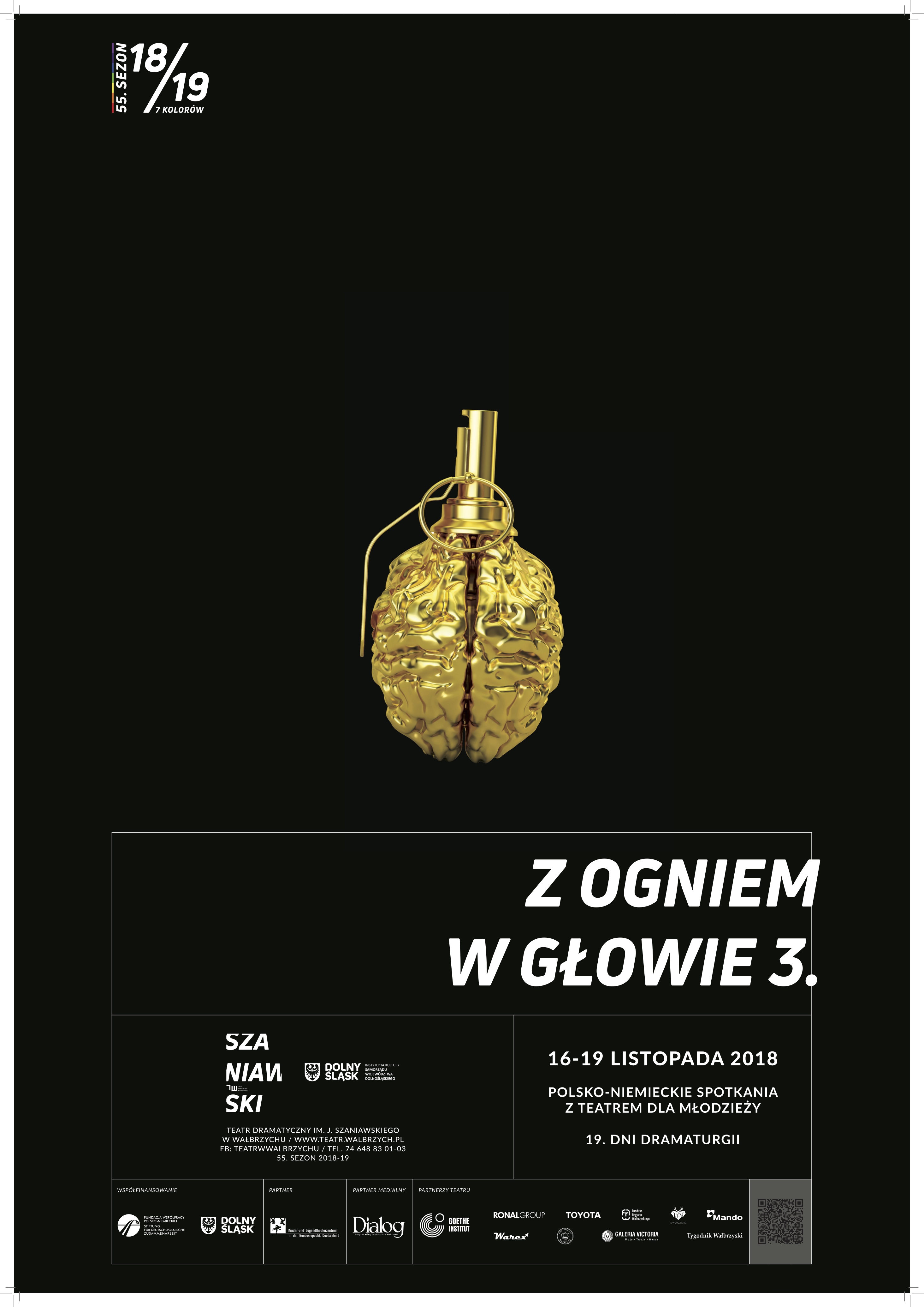 Z OGNIEM W GŁOWIE 3 to trzecia edycja polsko-niemieckich spotkań poświęconych nowej dramaturgii i teatrowi dla młodzieży, realizowana przez Teatr Dramatyczny w Wałbrzychu we współpracy ze stroną niemiecką.