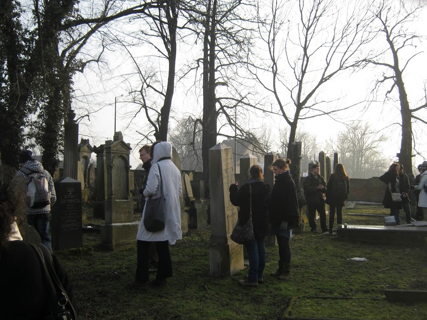 Während der nächsten vier Tage begann jeder Morgen nach dem Frühstück mit einer Einführung in die jiddische Sprache und Kultur (sowohl in der Vergangenheit als auch in ihrem heutigen Weiterleben), danach fanden verschiedene Exkursionen statt. Am Sonntag ging es nach einem Vortrag über die jüdische Geschichte Niederschlesiens mit dem Zug (von dessen Existenz im 200-Seelen-Dorf Kreisau alle Teilnehmer überrascht waren) ins 12 km entfernte Dzierżoniów. Dort besichtigten wir die Ausstellung in der neu renovierten Synagoge sowie das Dorfzentrum und den alten jüdischen Friedhof.