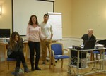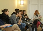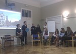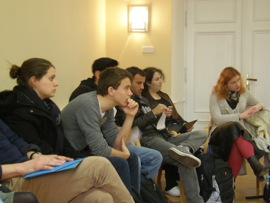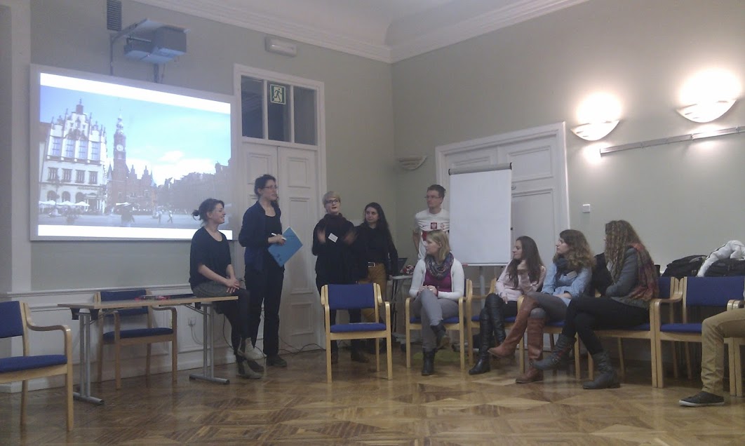 Am 8. März 2013 kam ich nach siebenstündiger Zugfahrt und anschließendem Bustransport von Wrocław in Krzyżowa an – im Vergleich zu manchen anderen eine geradezu kurze Anreise, so hatte z.B. ein Teilnehmer aus Dnipropetrovsk in der Ukraine eine zweitägige Reise hinter sich. Schnell ergaben sich erste Gespräche zum Thema und zu den Erwartungen der Teilnehmer, am nächsten Morgen begann dann das gemeinsame Programm. Dieses bestand im Verlauf der Woche aus einer Mischung von Vorträgen, Workshops und Exkursionen in die Umgebung. Ganz am Anfang stand eine Führung über das Kreisauer Anwesen, das eine starke symbolische Bedeutung für die Geschichte der deutsch-polnischen Beziehungen hat. Es folgte ein Vortrag, der einen Überblick über die jüdische Geschichte in Polen im Kontext europäischer Geschichte gab, anschließend wurden in einem Workshop zum Thema Antisemitismus von den Teilnehmern präsentierte Beispiele antisemitischer Vorfälle in ihren Heimatländern diskutiert. Am Abend stellten die Ländergruppen einander ihre Herkunftsländer vor – mit Powerpoint-Präsentationen, Tänzen, Videos und Geographiespielen sowie ausgewählten Delikatessen wie z.B. ukrainischen Süßigkeiten, polnischer Wurst und israelischem Bamba.