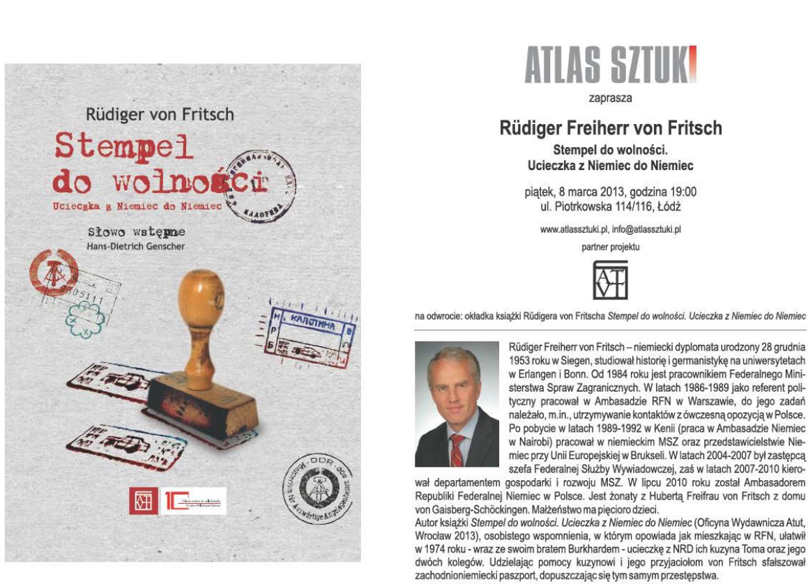8 marca dyplomata gościł w Atlasie Sztuki w Łodzi, gdzie promował swoją najnowszą książkę „Stempel do wolności. Ucieczka z Niemiec do Niemiec”, która właśnie ukazała się w Polsce. W Niemczech wyszła w 2009 roku, została przyjęta z entuzjazmem Pomaga młodym ludziom zrozumieć, jak wyglądała wschodnioniemiecka rzeczywistość.