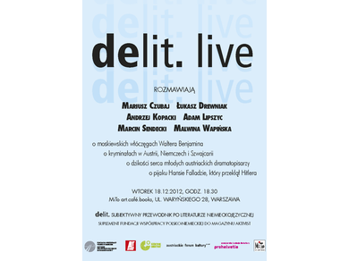 W warszawskiej kawiarni MiTo art.café.books znani krytycy, dziennikarze i tłumacze rozmawiali 18 grudnia 2012 r. o wybranych tytułach z subiektywnego przewodnika po literaturze niemieckojęzycznej „Delit”. Dyskusję poprowadził dziennikarz i poeta Marcin Sendecki.
