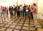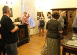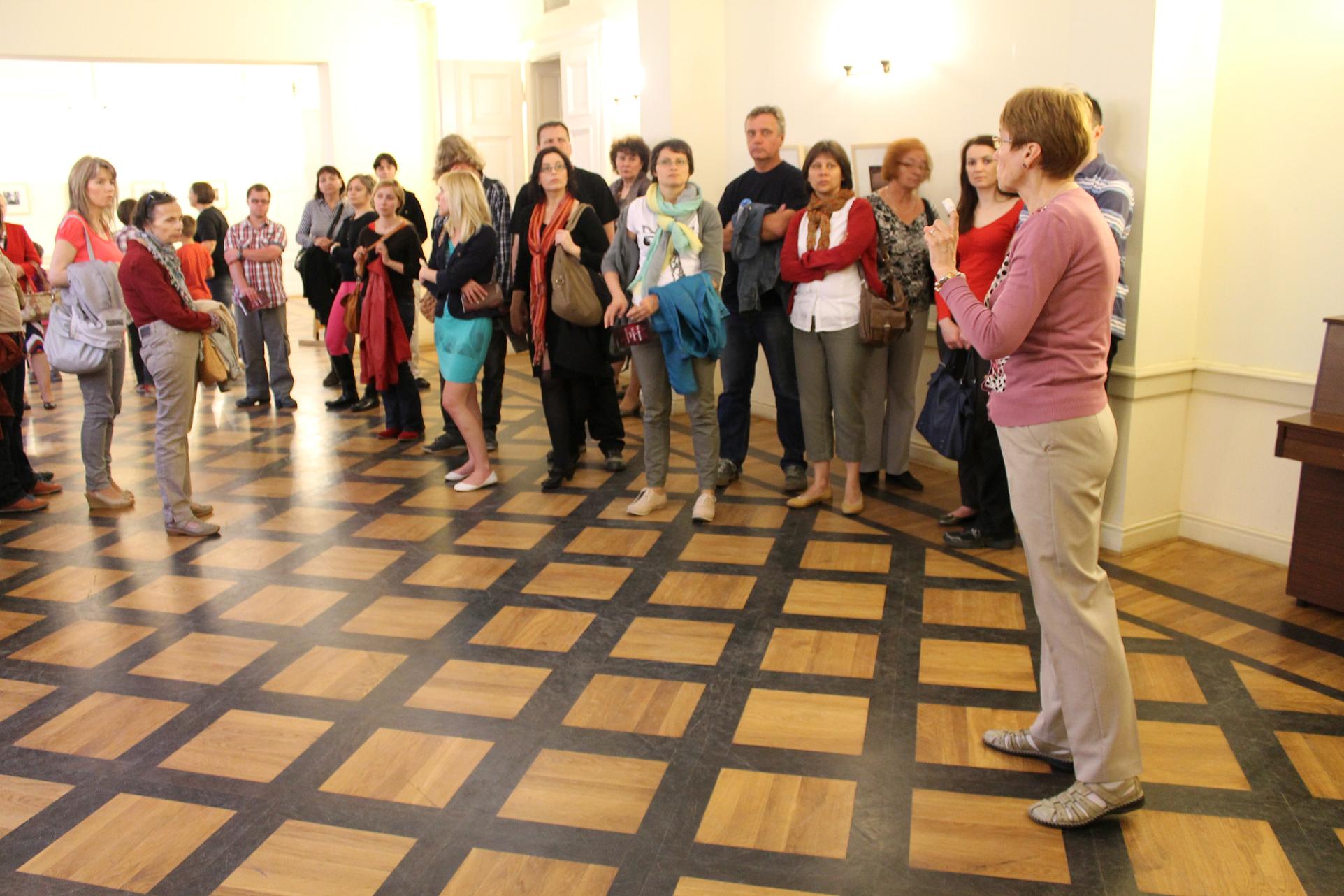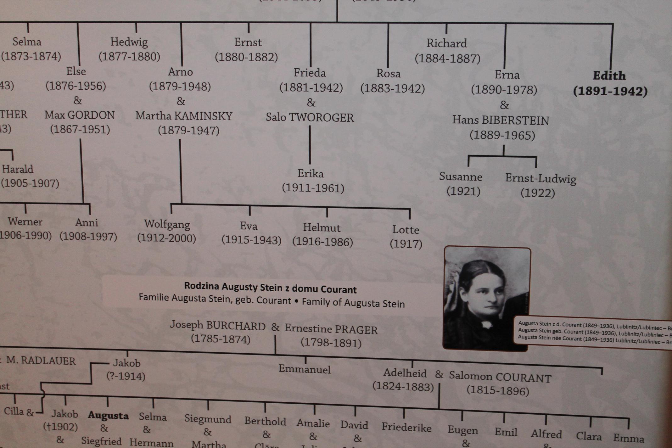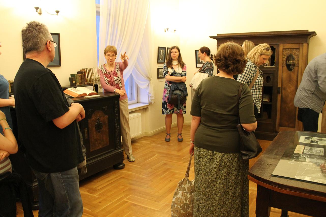 Zwiedzanie rozpoczęła opowieść o rodzinnej fotografii. Kustoszka domu – Danuta Mrozowska – wskazywała na kolejne postacie, opowiadając o ich losach. Ojciec Edyty, Zygfryd Stein, był przedsiębiorcą handlującym drzewem opałowym. Po jego śmierci – zmarł w 1893 roku –przedsiębiorstwo przejęła matka Edyty – Augusta. „Fotografia, którą państwo oglądają, została zrobiona po śmierci Zygfryda. Jego sylwetka została doklejona do rodzinnego zdjęcia, co z pewnością nie umknie uważnemu odbiorcy” – wyjaśniła kustoszka. Od fotografii rodzinnej przeszliśmy do kolejnych plansz, które prezentowały etapy życia patronki Europy: edukacja w wrocławskich szkołach gimnazjalnych, później studia na Uniwersytecie Wrocławskim i kryzys wiary, z którym musiała zmierzyć się młoda Edyta. Wychowywana w rodzinie silnie związanej z tradycją żydowską, zdecydowała się samodzielne poszukiwanie swojej drogi duchowej. Najpierw stała się zdeklarowaną ateistką, poświęcającą swoja uwagę filozofii (studiowała między innymi u Edmunda Husserla). Kolejnym etapem była fascynacja katolicyzmem, na którą wpływ miało przeczytanie książki Życie św. Teresy z Avili spisane przez nią samą. W styczniu 1922 roku Edyta Stein przyjmuje chrzest, przybiera imię Teresy. Od tej pory łączy pracę naukową z zgłębianiem prawd wiary katolickiej. Postawa ta doprowadzi ją to do klasztoru karmelitanek bosych w holenderskim Echt, skąd wyruszy w swoją ostatnią podróż – do hitlerowskiego obozu Auschwitz. Aresztowana przez Gestapo, wraz z innymi katolikami pochodzenia żydowskiego, Edyta zostaje zagazowana w obozowym krematorium 9 sierpnia 1942 roku.