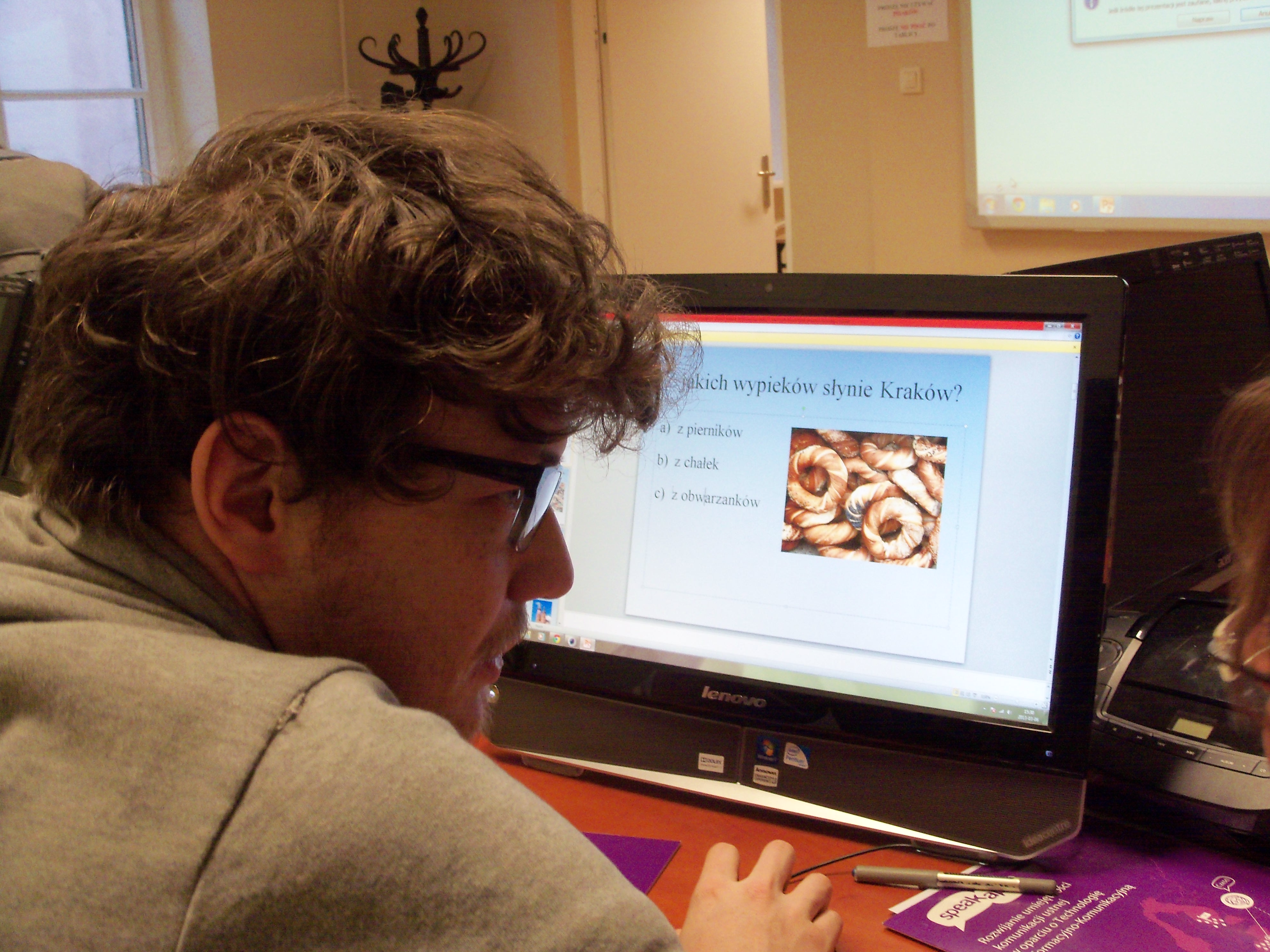 Zadania przygotowane przez prowadzącą obejmowały różny stopień zaawansowania kursantów. Początkujący ćwiczyli jak poradzić sobie ze znalezieniem mieszkania, bardziej zaawansowani mogli poczytać o polskich kampaniach społecznych. Arek bez problemu poradził sobie z przykładowym egzaminem końcowym.