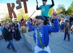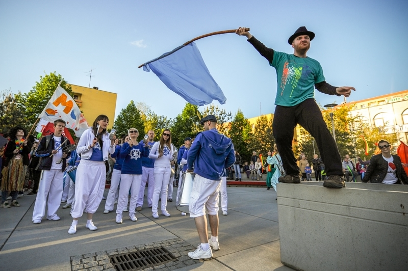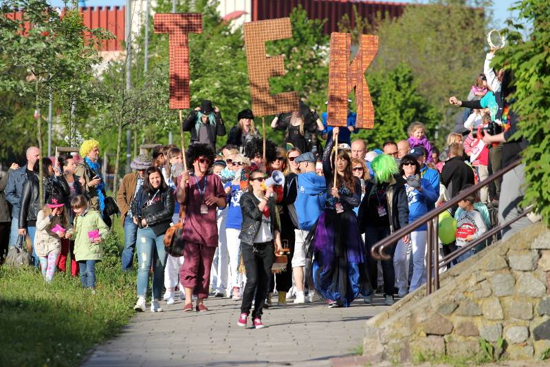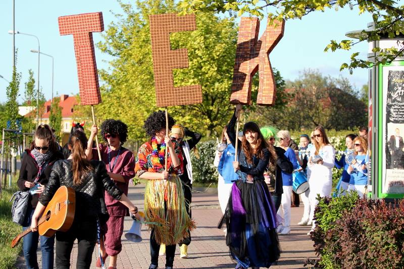 Muzyka, zabawa, postacie w barwnych strojach, perukach, kapeluszach i na szczudłach, dorośli i dzieci, wiwaty, okrzyki – tak wyglądał happening pierwszego dnia Festiwalu TEK. Uczestnicy pochodu wyruszyli spod Miejskiego Ośrodka Kultury, by razem – śpiewając i tańcząc - przejść przez Police do miejsca spektaklu „Cyrk bez przemocy”, który przedstawił Teatr Klinika Lalek. O roli happeningu opowiada Aleksandra Słowińska, organizatorka Festiwalu: „Działanie uliczne, wyjście w miasto, sprawia, że uczestnicy już pierwszego dnia się integrują, poznają i poprzez zabawę współpracują ze sobą, natomiast mieszkańcy miasta dowiadują się o naszej obecności i działalności.”
