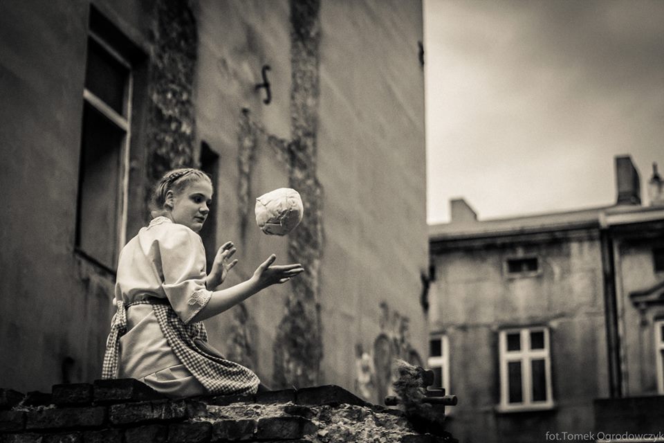 Taką niedwuznaczną, ale dwujęzyczną wyliczanką aktorzy i goście teatru Grotest Maru przywitali publiczność Festiwalu Łódź 4 Kultur na przedstawieniu pt. „Rewolucji 17, wspomnienia Aurelii”. To jedne z niewielu słów, które zostały wypowiedziane podczas spektaklu. Grotest Maru z Niemiec tworzy przedstawienia typu site specific, czyli dopasowane do konkretnej przestrzeni i jej historii. Jest to dziedzina sztuki stworzona wokół określonego miejsca. Aktorzy prawie nie operują słowem werbalnym. Tworzą teatr międzynarodowy. Jeżdżą po świecie i posługują się pojedynczymi sformułowaniami w języku kraju, który akurat odwiedzają. Dostosowują się do miejsca. Próbują wyczuć jego historię i wtopić w jego tożsamość. Często to właśnie konkretna przestrzeń dyktuje kolejne sekwencje scenariusza i staje się bohaterem. Tym razem było nim podwórko pod adresem Rewolucji 1905 roku 15/17, które zagrało w przedstawieniu typowe „łódzkie podwórze” sprzed wojny..