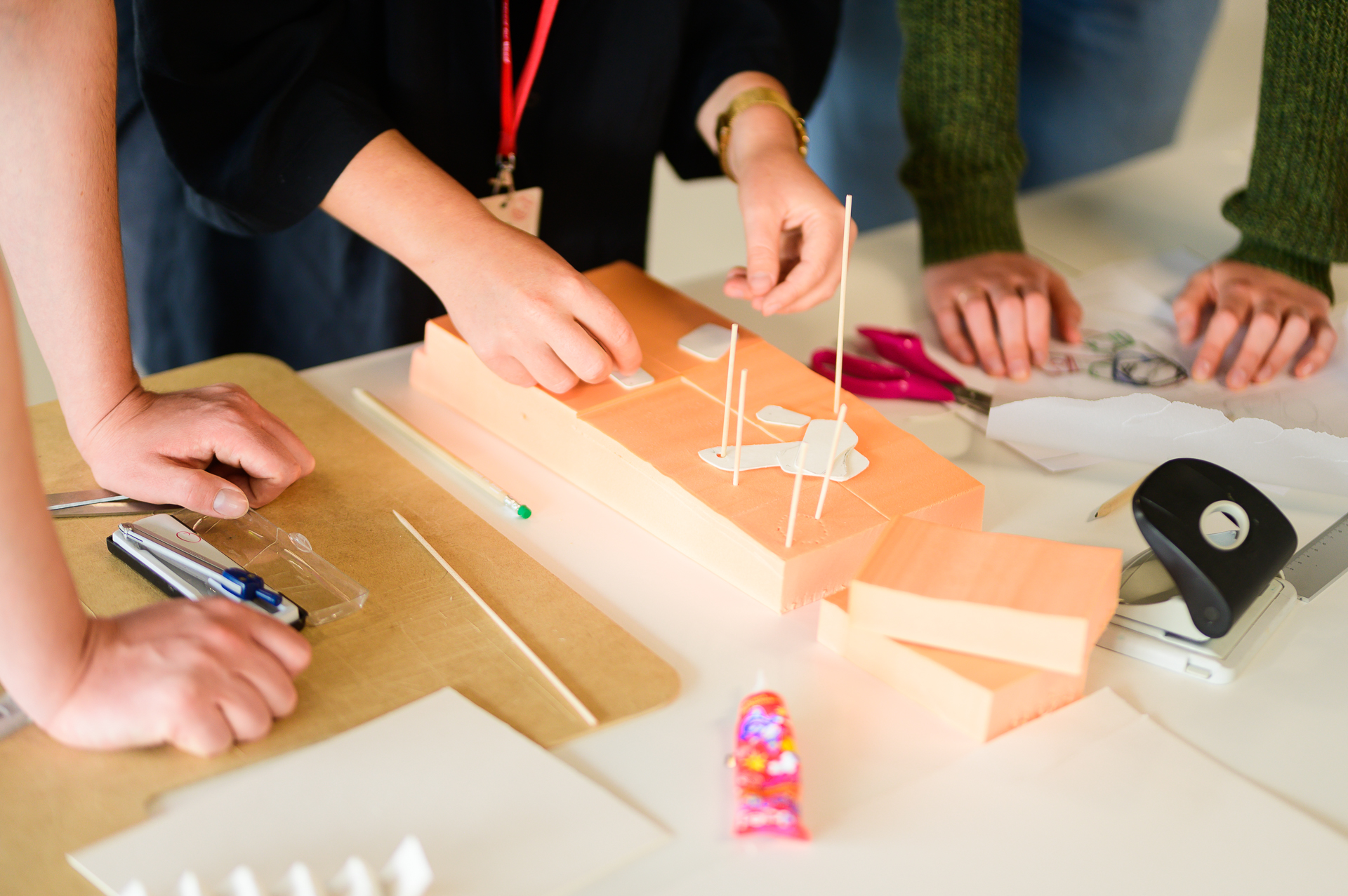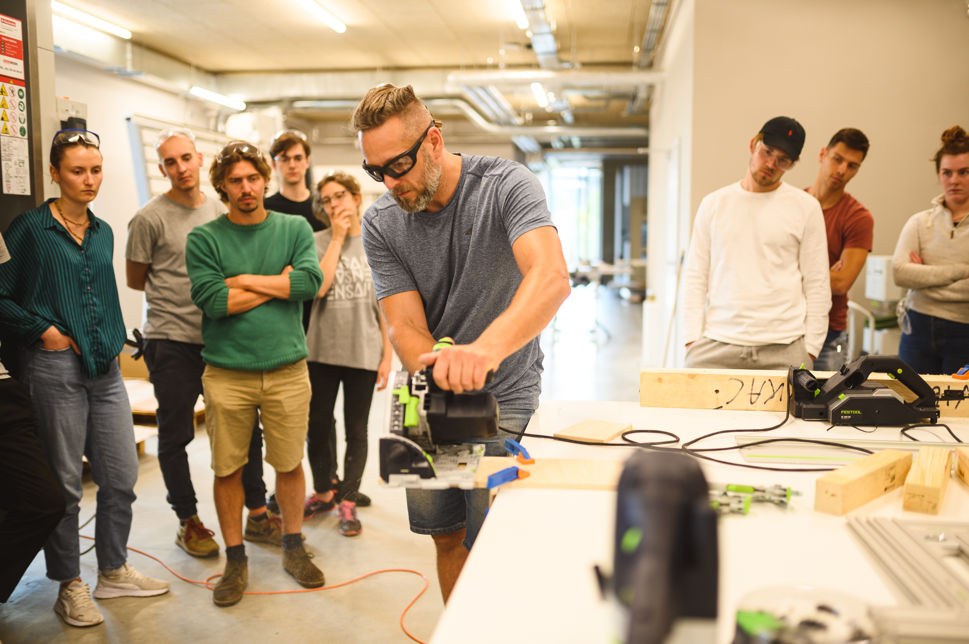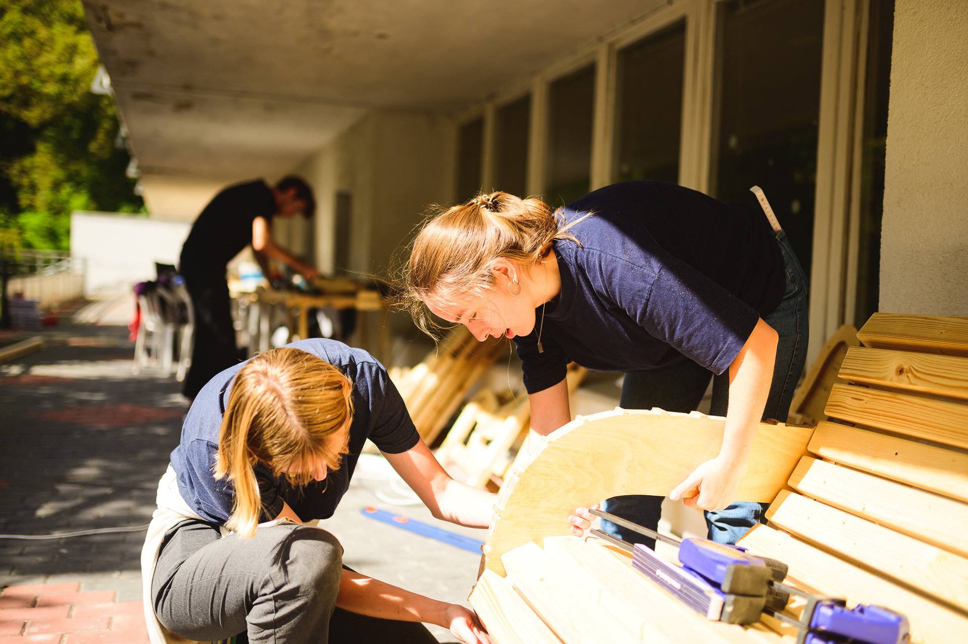 Kolejnym etapem procesu było stworzenie projektu. Uczestnicy warsztatu zmagali się z tym, co w pracy zawodowej stanie się ich chlebem powszednim. Rysowali, kreślili, kalkulowali. Nad poprawnością projektów czuwali pozostali opiekunowie: Adam Wierciński (wierciński — studio), Mascha Fehse i Marius Busch (Construct Lab Berlin) oraz Katarzyna Furgalińska i Łukasz Smolarczyk (Supergut Studio). Gdy wzory i obliczenia zapaliły zielone światło, przyszedł czas na modelowanie. Młodzi projektanci mieli do dyspozycji prototypownię salonu meblowego VOX. Oddana do użytku zaledwie rok wcześniej, jeszcze pachniała świeżością. Wielu z uczestników dzięki warsztatom pierwszy raz miało styczność z profesjonalnymi maszynami i narzędziami do pracy z drewnem. - Na studiach nie mamy okazji tak pracować. Mało która uczelnia dysponuje podobnym sprzętem. - mówi Dominika, studentka architektury na Uniwersytecie Artystycznym w Poznaniu. - Na warsztatach możemy rzeczywiście budować! To jest żywa praca z materiałem.