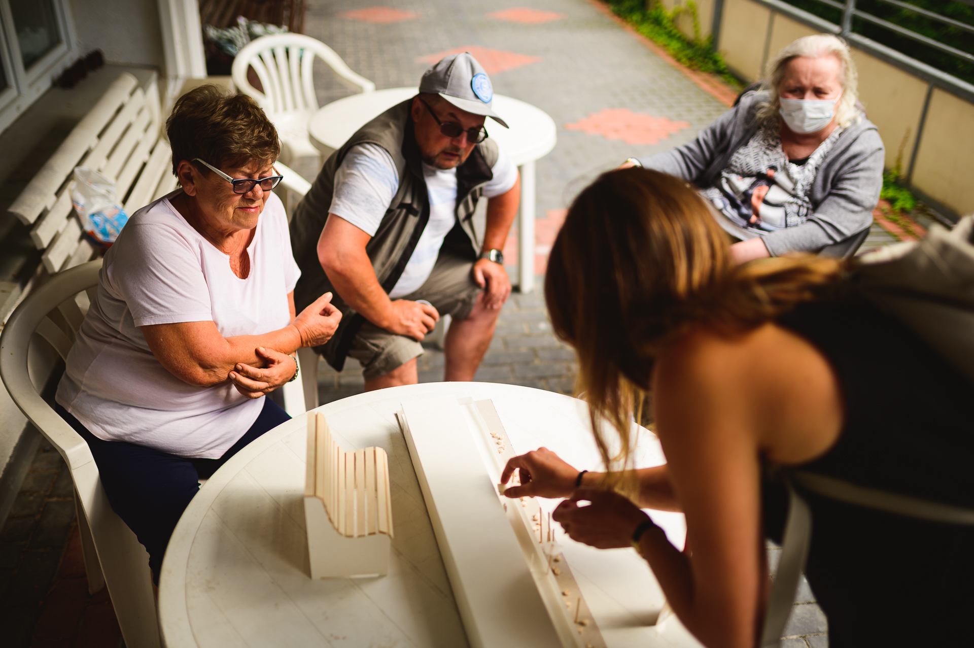 Wygląda na to, że warsztaty Mood For Wood przyniosły jeszcze jeden rezultat. Tuż po oddaniu do użytku pergoli i ławek w Domu Opieki Społecznej Ugory, zajęli na nich miejsca organizatorzy, projektanci, Pan Włodek i jego koledzy z sąsiednich pokojów. Uczestnikom programu Mood For Wood udało się stworzyć przestrzeń łączącą nie tylko mieszkańców Poznania. De facto, spotkali się w niej przedstawiciele dwóch krajów, wielu grup społecznych oraz co najmniej dwóch pokoleń.