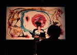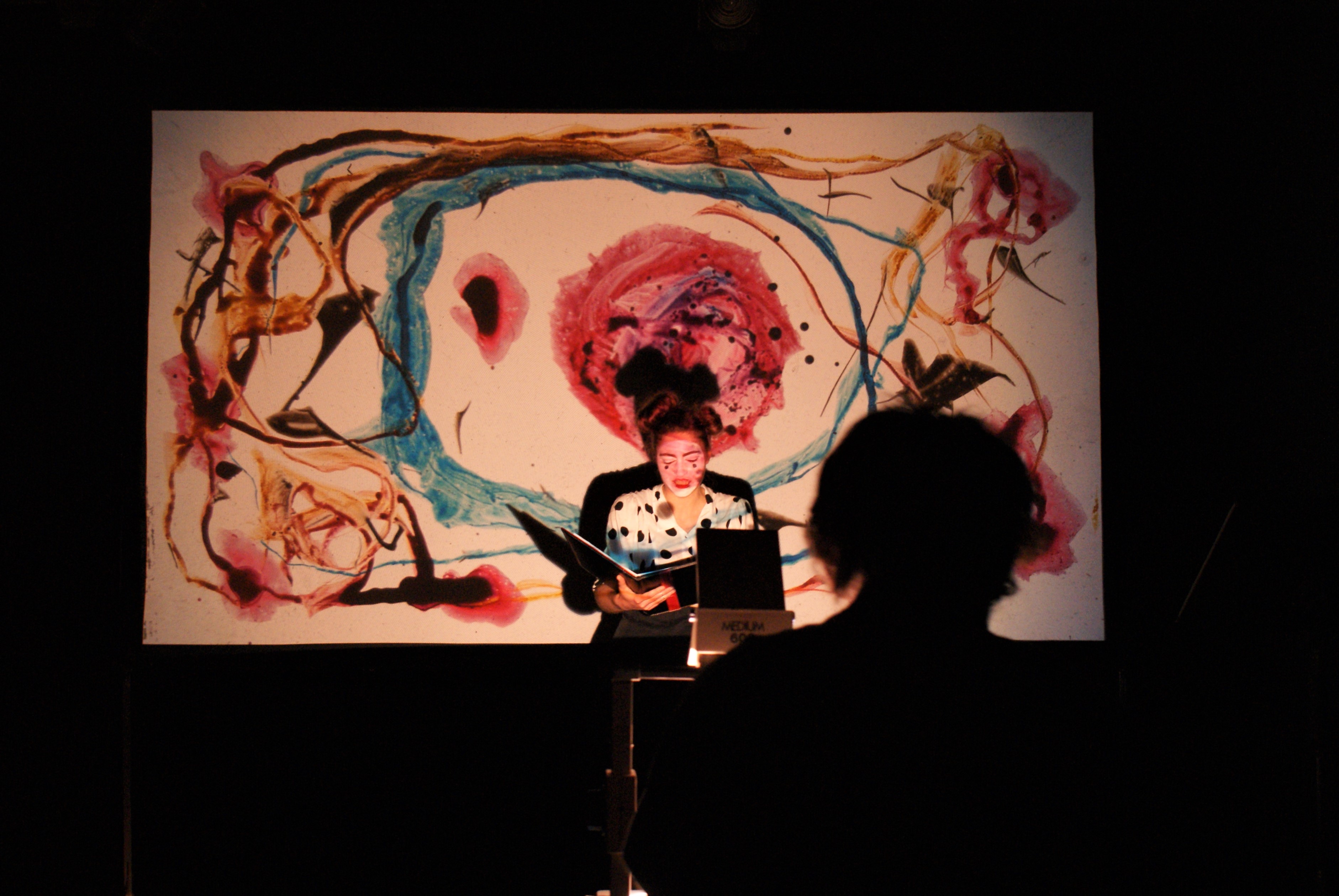 Muzyce rozpisanej na pięć instrumentów (klarnet, wiolonczelę, flet, skrzypce i fortepian) towarzyszy deklamacja poematu oraz malowanie na żywo. Steffen Thiemann za pomocą szklanej podkładki, pędzla, farb i rzutnika, przenosi emocje Pierrota na barwę i kształt.