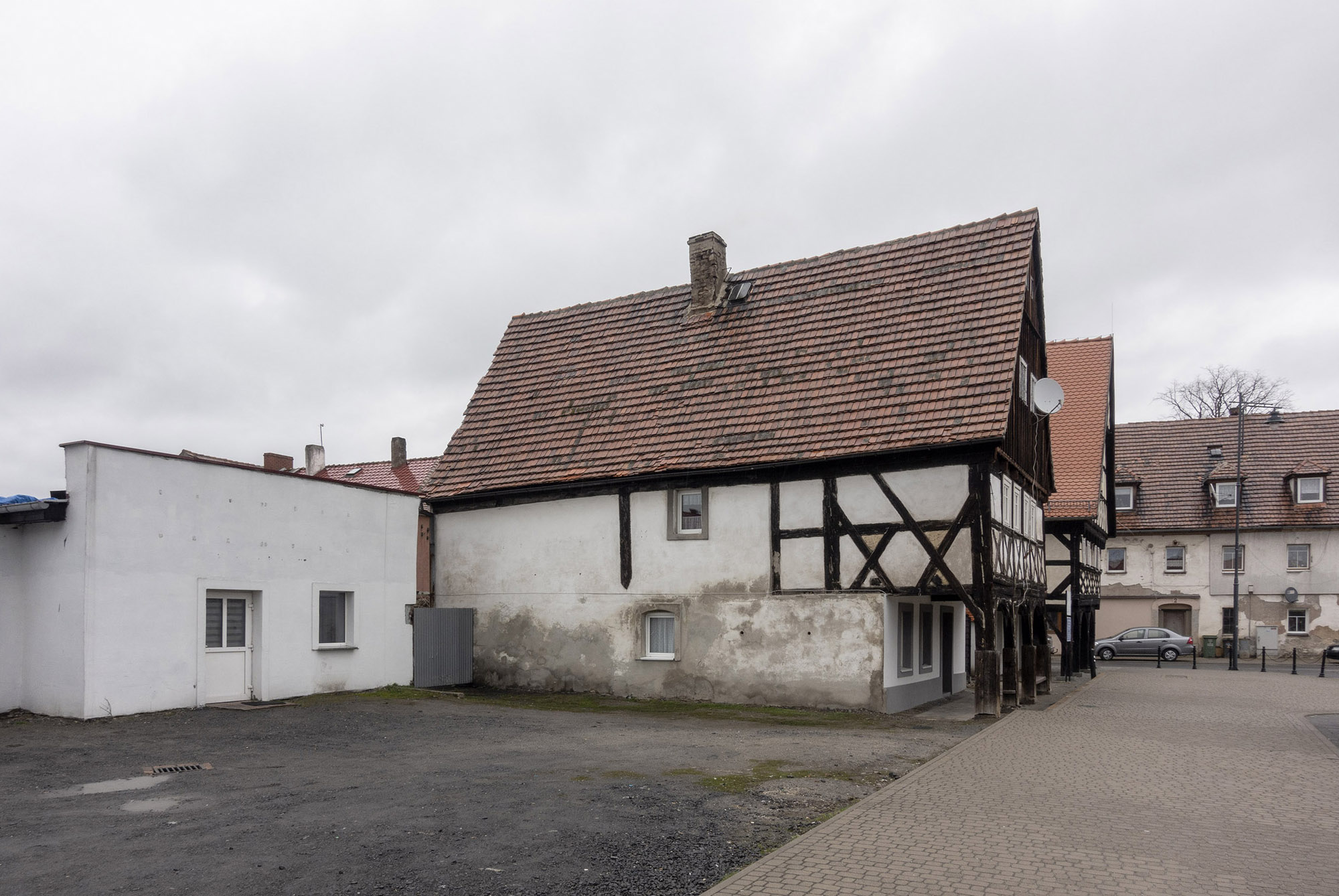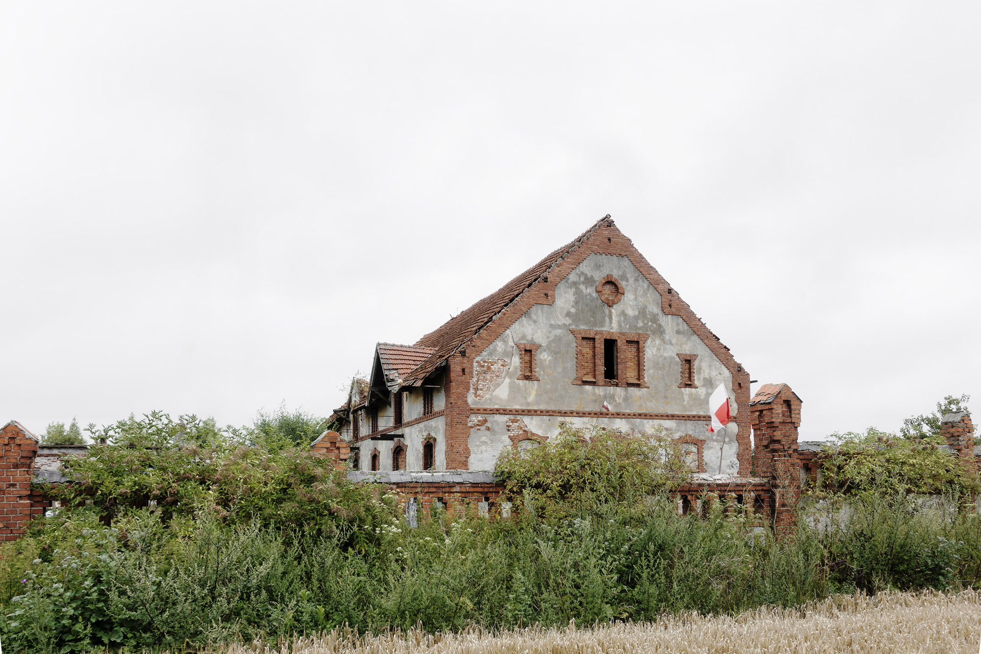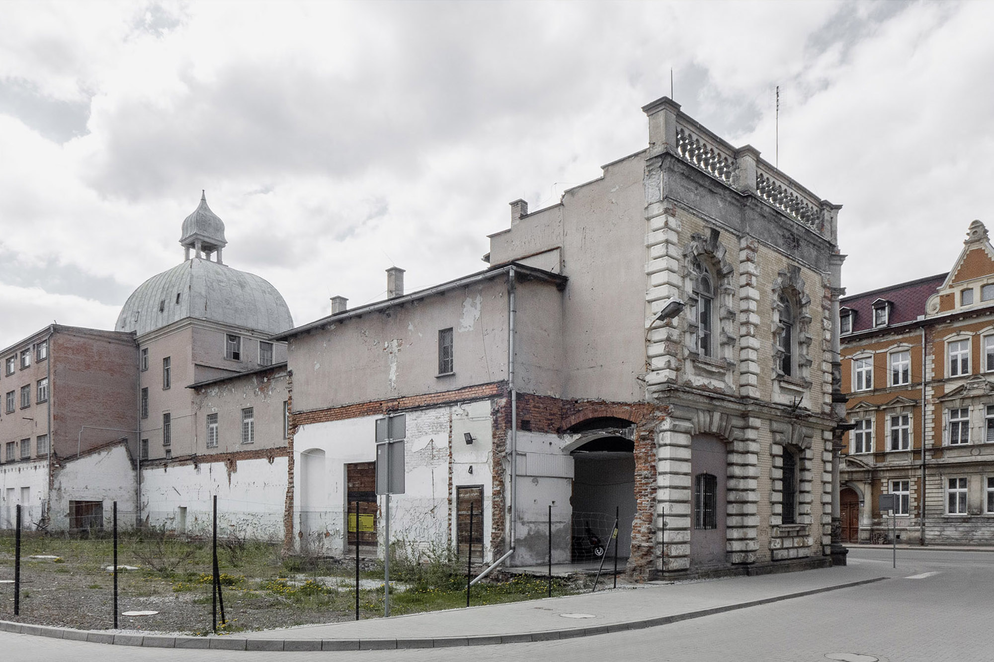 Mały, biały dom – na oko dwudziestoletni. Pod oknem sterta drewna, jakieś krzesło. Za metalowym ogrodzeniem stoi zaparkowany Golf. Po drugiej stronie ulicy budynek, który musiał powstać, kiedy były tu jeszcze Niemcy. Tuż za nim wznosi się ceglany, neogotycki kościół. Pobieżny opis nie oddaje klimatu fotografii wykonanej najpewniej wczesną wiosną, kiedy słońce kryło się za chmurami. Gdzie i kiedy zrobiono zdjęcie? Nie wiadomo. Autorzy oszczędzają szczegółów, ostrożnie dawkują informacje. Równie ostrożne wydaje się ich podejście do przedstawianych miejsc. Nie znajdziecie w Nieswojości pocztówkowych, czy najbardziej „instagramowych” ujęć Dolnego Śląska. Zobaczycie za to przyczepę kempingową rodem z PRL, stojącą obok drewnianego składziku, do którego wstępu strzegą plastikowe drzwi. Biało-czerwoną flagę powiewającą na ruinach ceglanej budowli. Odpadające tynki sąsiadujące z pstrokato-kolorowymi fasadami. Fotografie Pankiewicz i Przybyłki uderzają surowością. Nie pokazują lukrowanej rzeczywistości, kolorowej fasady, która mogłaby być atrakcją turystyczną, ale miejsca zamieszkane, odwiedzane, użytkowane przez ludzi, których rodzice, dziadkowie, pradziadkowie przybyli z różnych miejsc. I podjęli próbę oswojenia nieznanych przestrzeni. Autorzy za pomocą fotografii pokazują efekty przesunięcia granic i masowych przesiedleń. Dolny Śląsk w ich ujęciu to kraina o niezdefiniowanej tożsamości, pełna kontrastów. Na większości zdjęć nie ma ludzi, a jeśli już, to w oddali. Pierwszoplanowymi aktorami są tu scenografie pozbawione aktorów. Obserwujemy tylko domy, samochody, rabaty kwiatowe, szyldy sklepów. Nieobecność ludzi wzmacnia poczucie tytułowej nieswojości. Przyglądam się detalom i próbuję znaleźć odpowiedź: dlaczego ten element tak bardzo różni się od sąsiadującego z nim? Nie znajduję wytłumaczenia chaosu. Fotografie zmuszają do zadawania pytań bez odpowiedzi – to właśnie stanowi siłę prac Pankiewicz i Przybyłki.